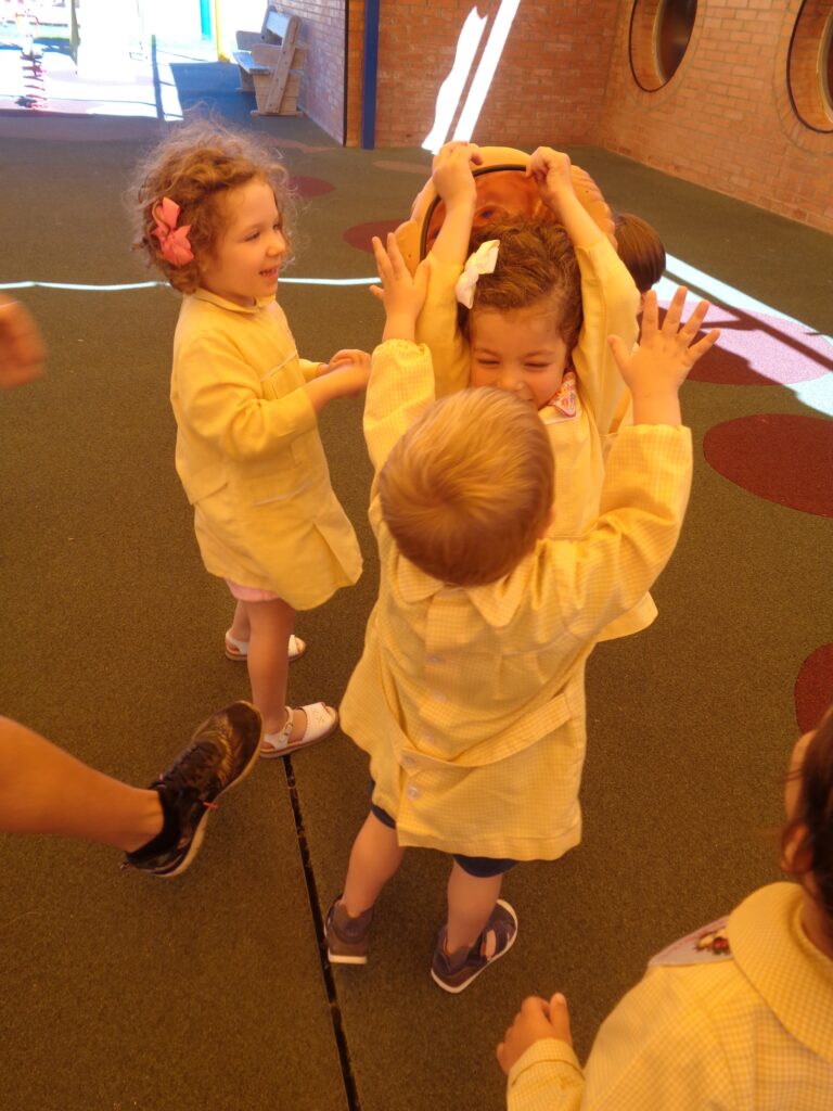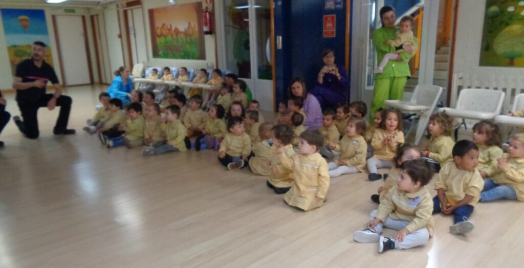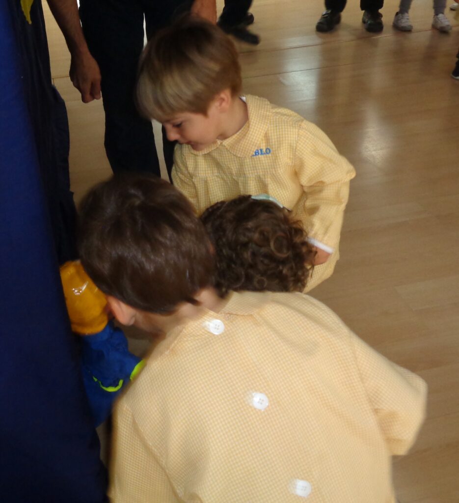 Os dejo fotografías de la actividad, que aunque estaba programada para el alumnado de 2-3 años, los demás también observaron atentamente como practicaban el pasar y parar.