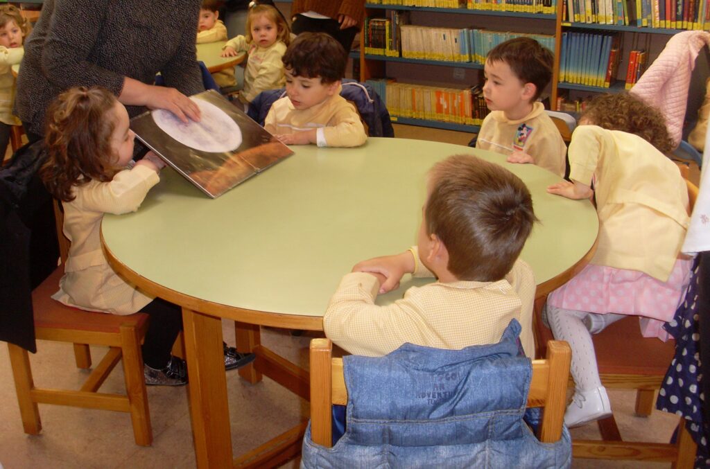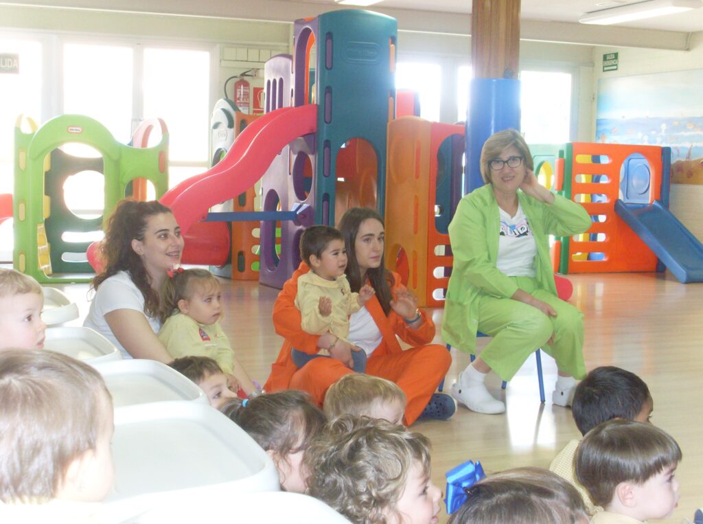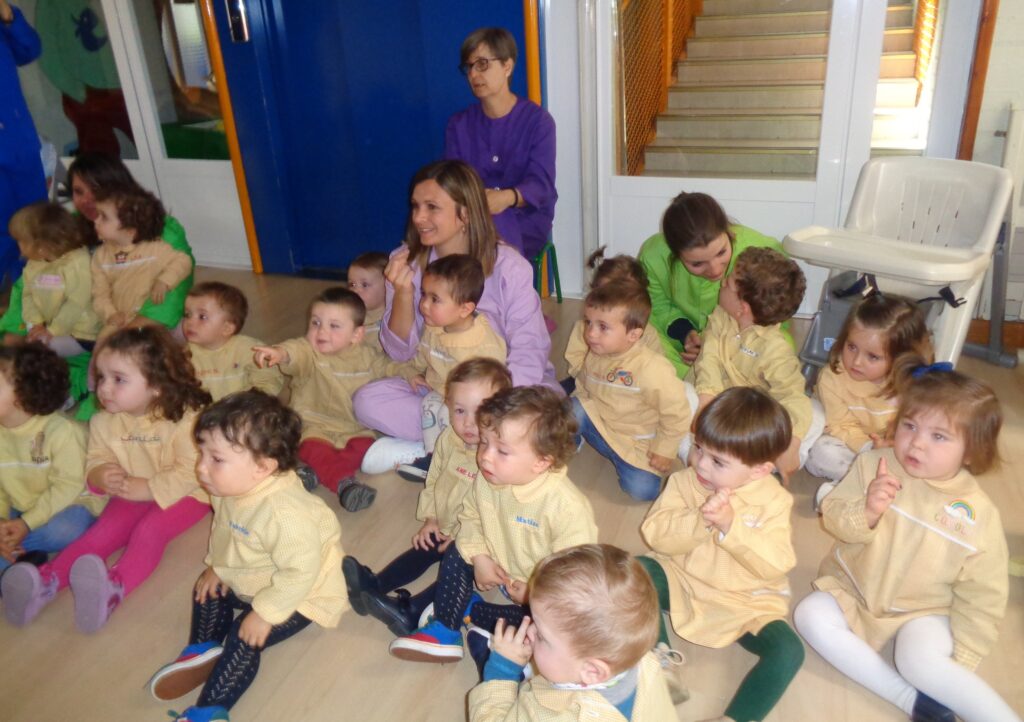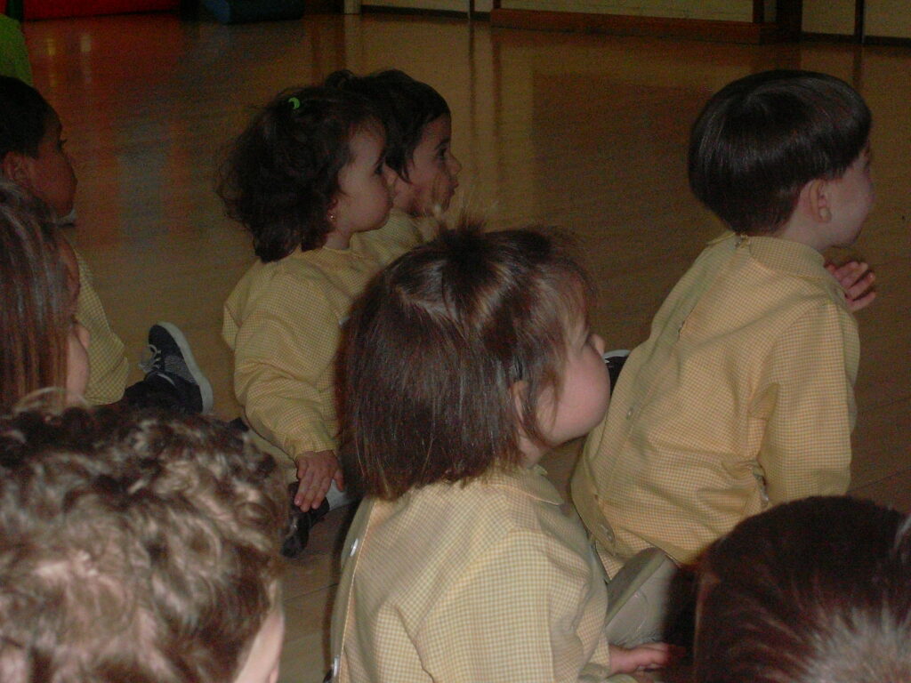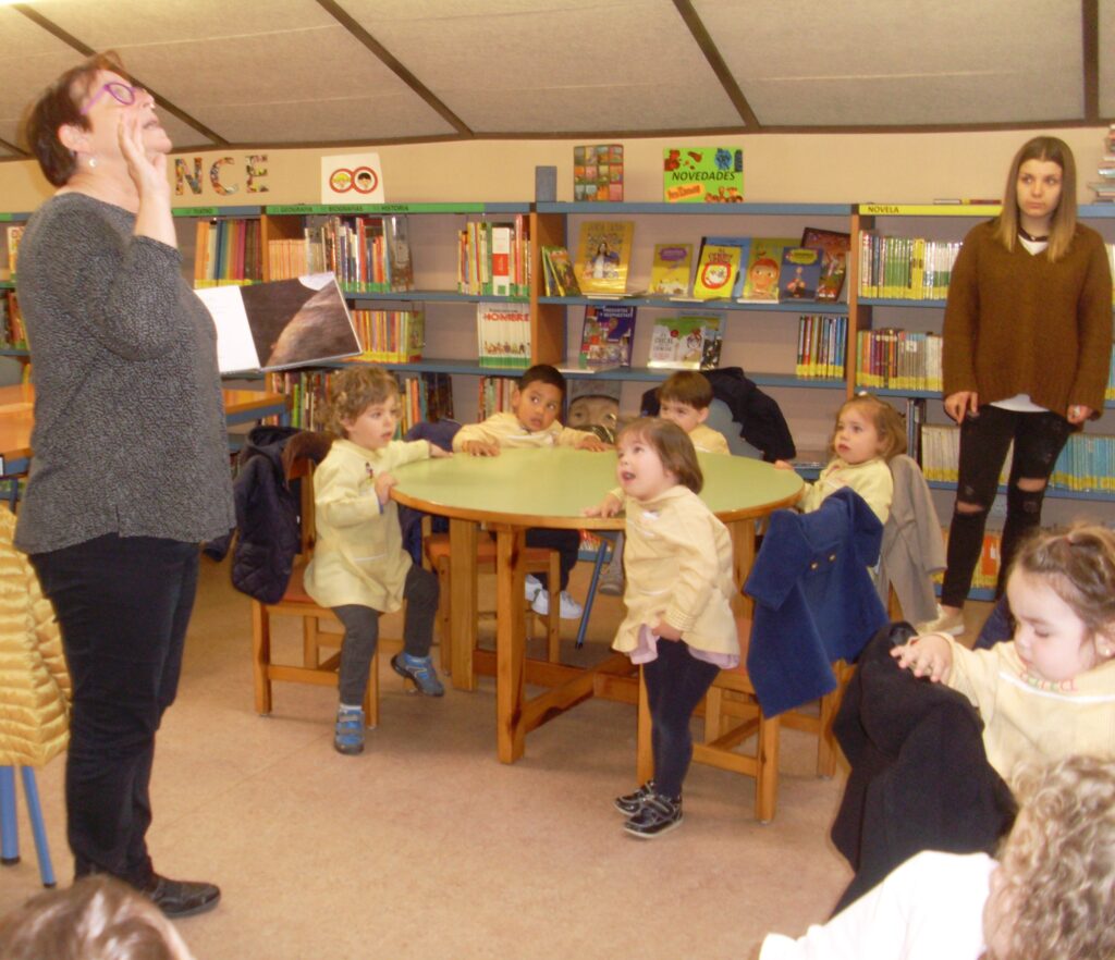 Hemos elegido el cuento «A que sabe la luna», un cuento muy interesante y con el que han mantenido la atención hasta el final, en las fotos podéis observar sus caras mientras la narración.