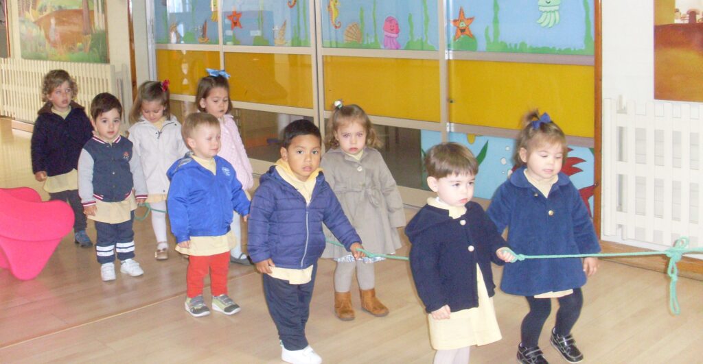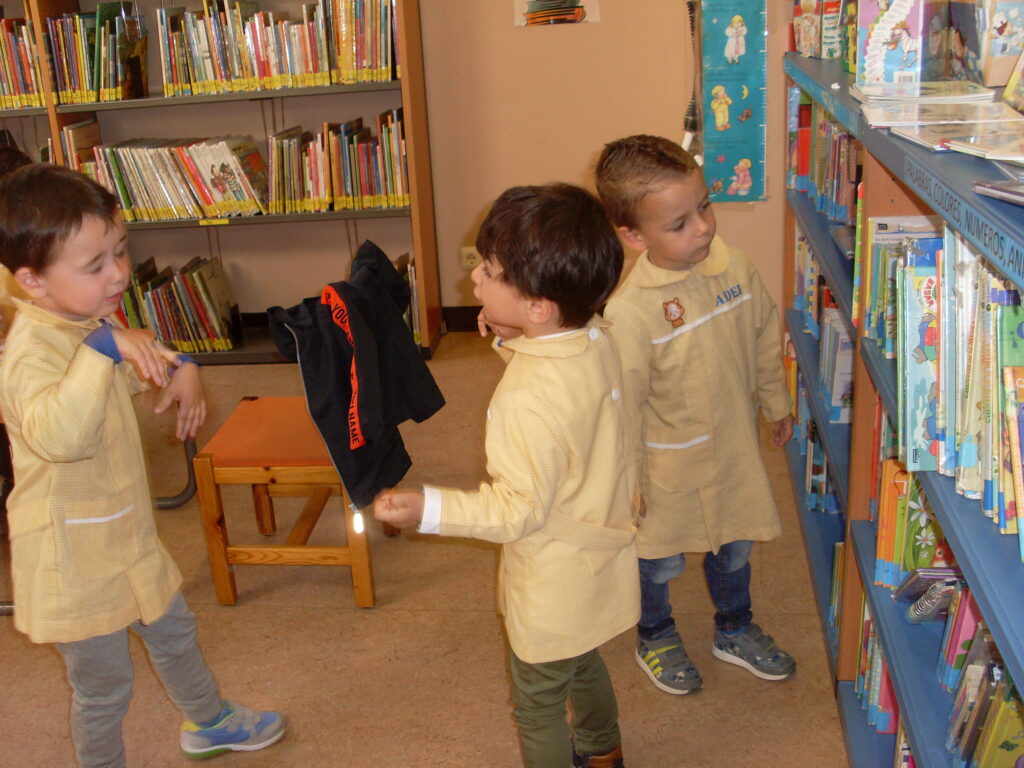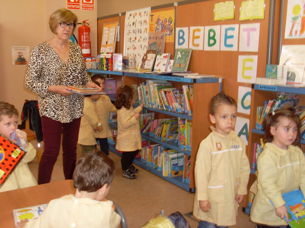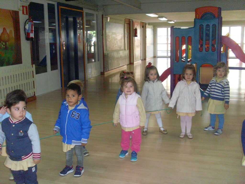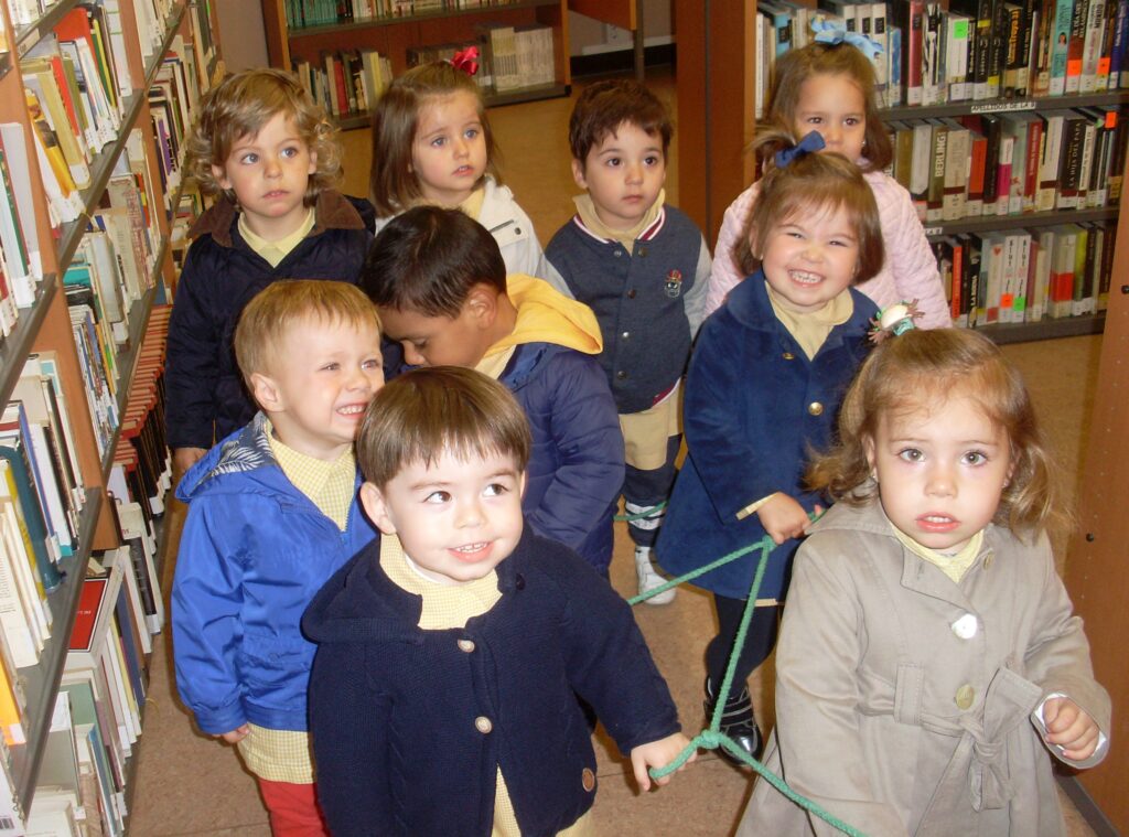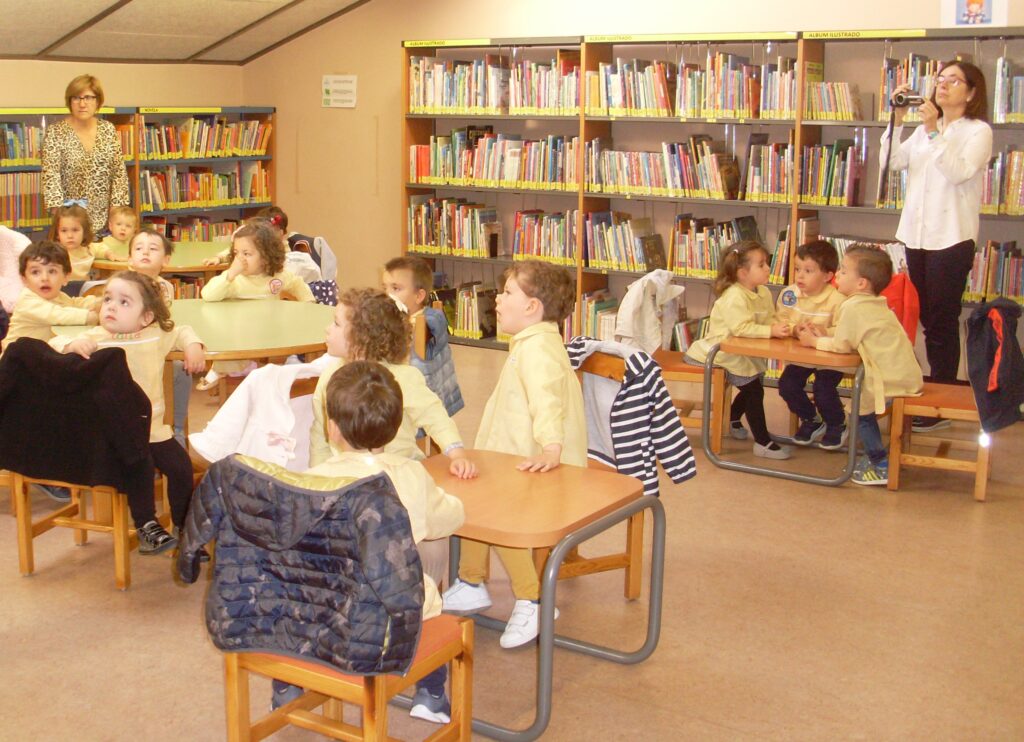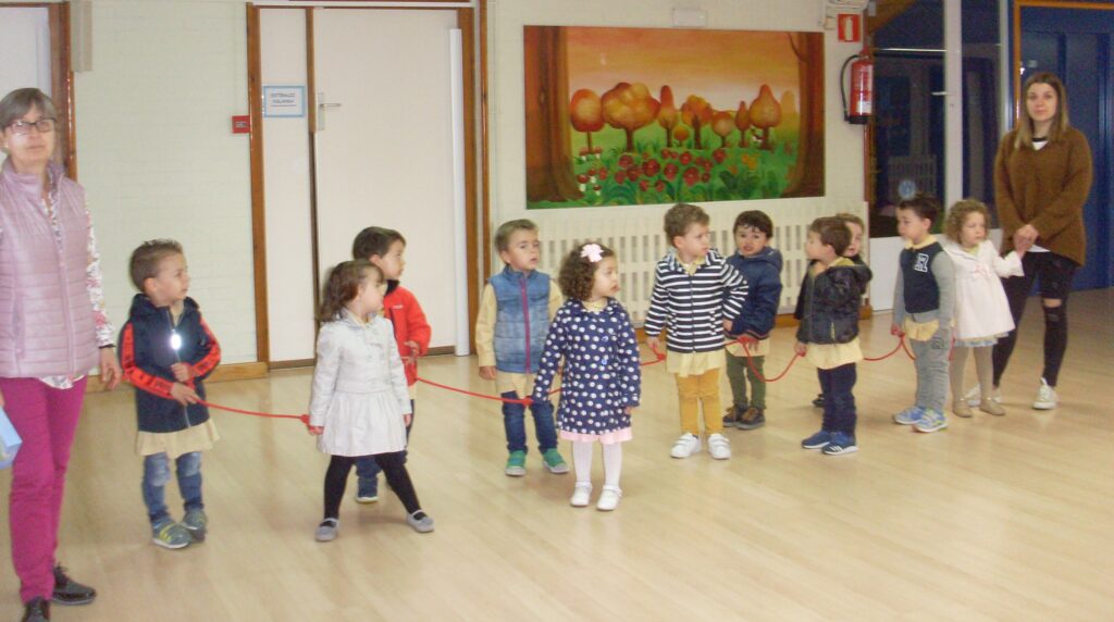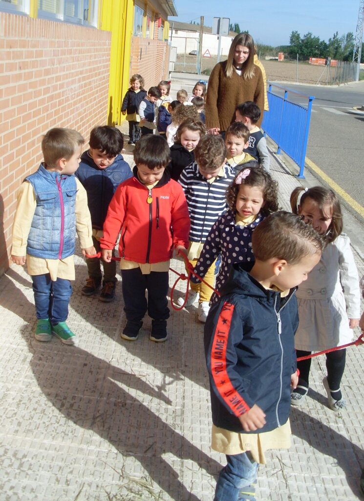 Hoy hemos visitado la biblioteca con el alumnado de 2 a 3 años. Los dos grupos acompañados de sus tutoras han ido bien agarrados a la cuerda guía, y hemos llegado a la biblioteca sin percances y disfrutando del estupendo día de sol que teníamos.