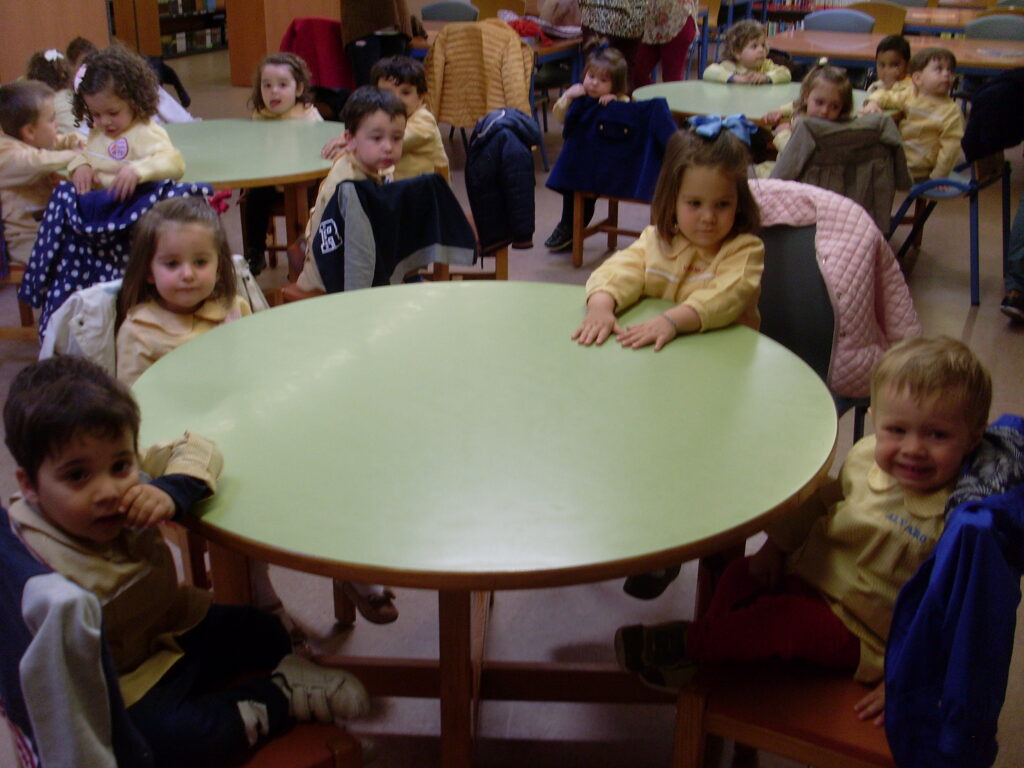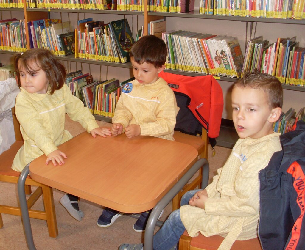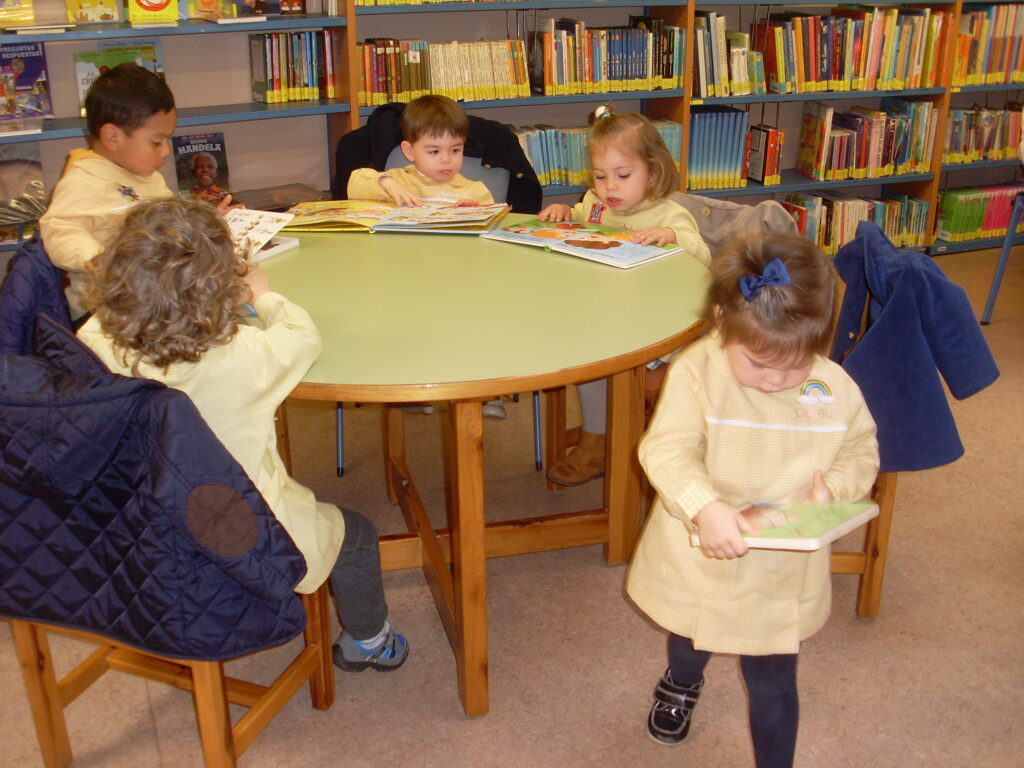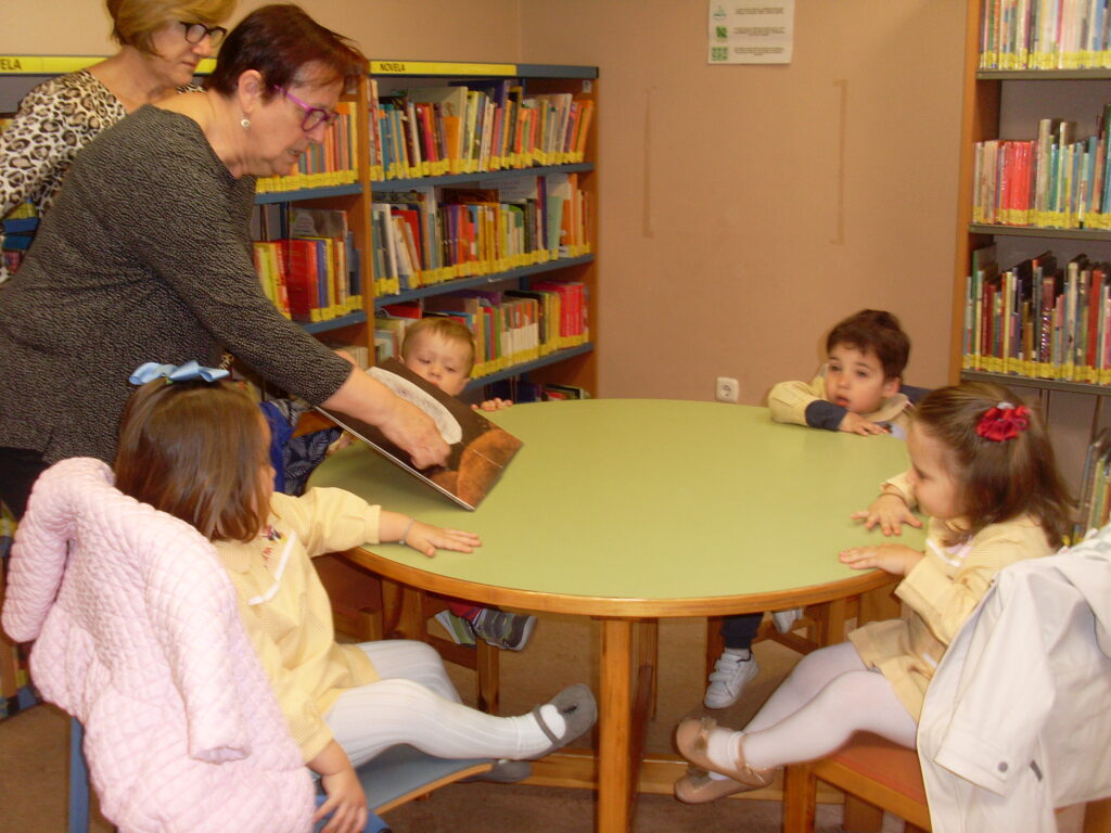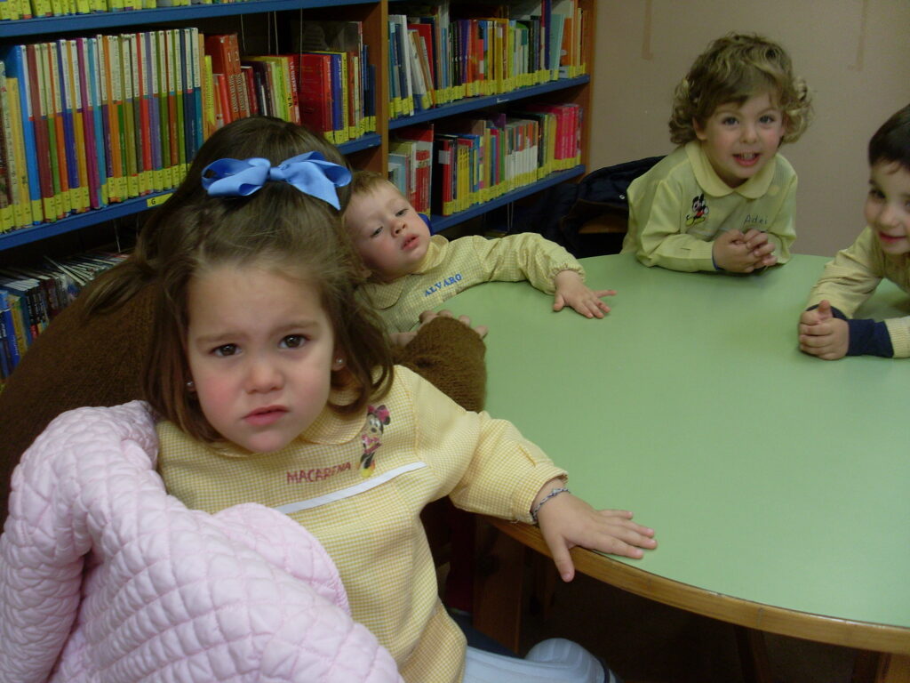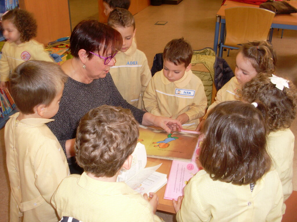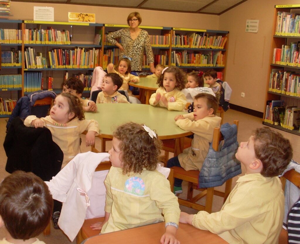 Hoy hemos visitado la biblioteca con el alumnado de 2 a 3 años. Los dos grupos acompañados de sus tutoras han ido bien agarrados a la cuerda guía, y hemos llegado a la biblioteca sin percances y disfrutando del estupendo día de sol que teníamos.