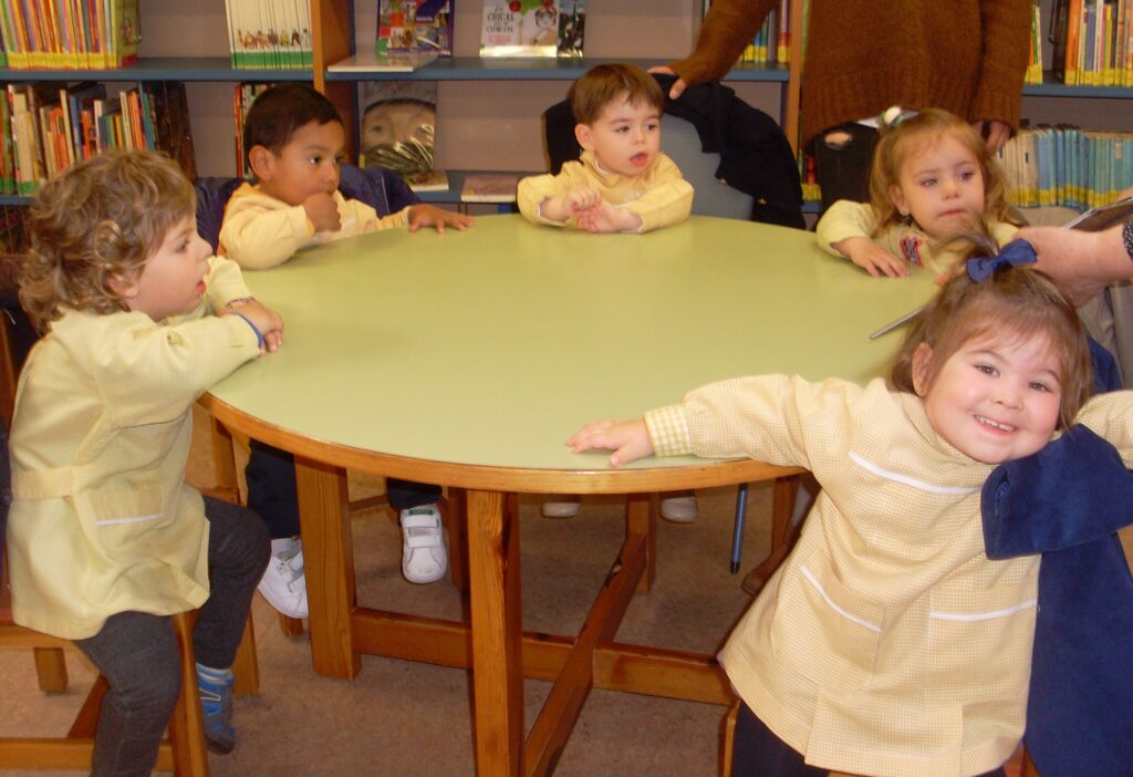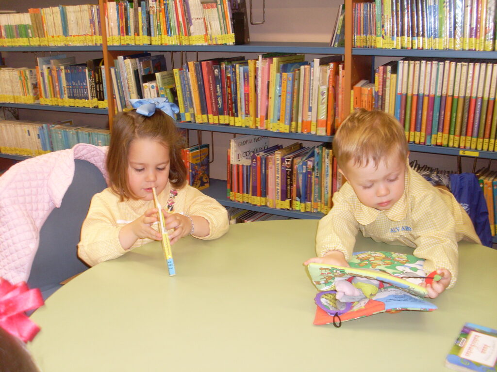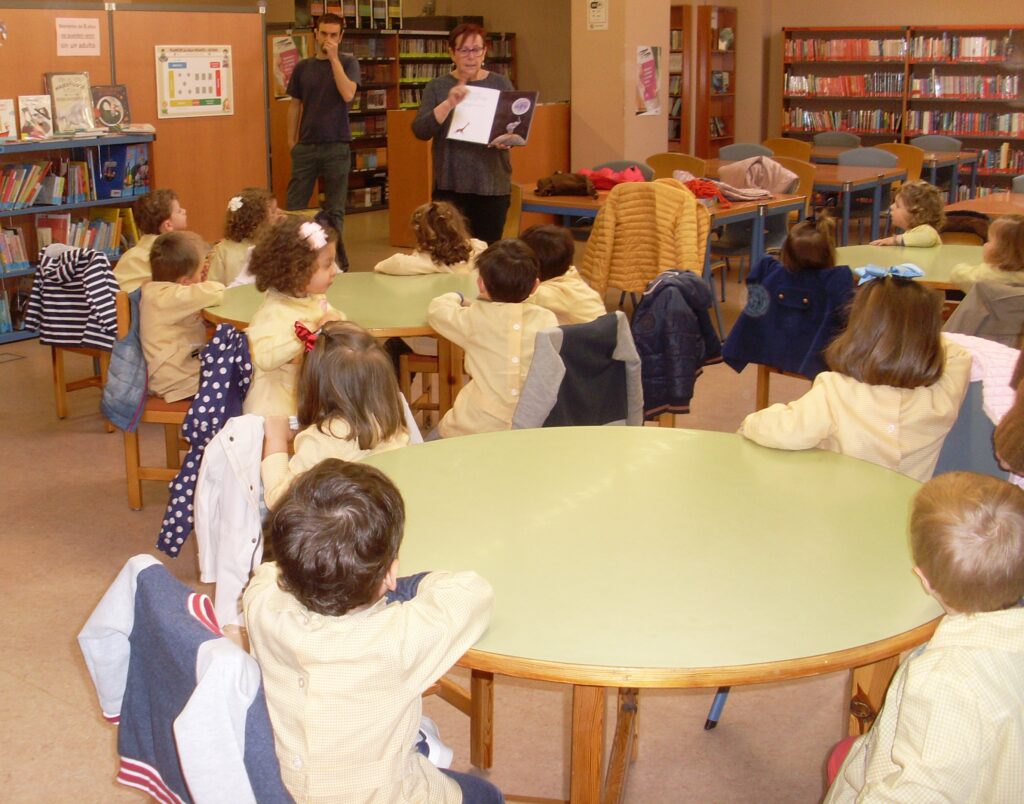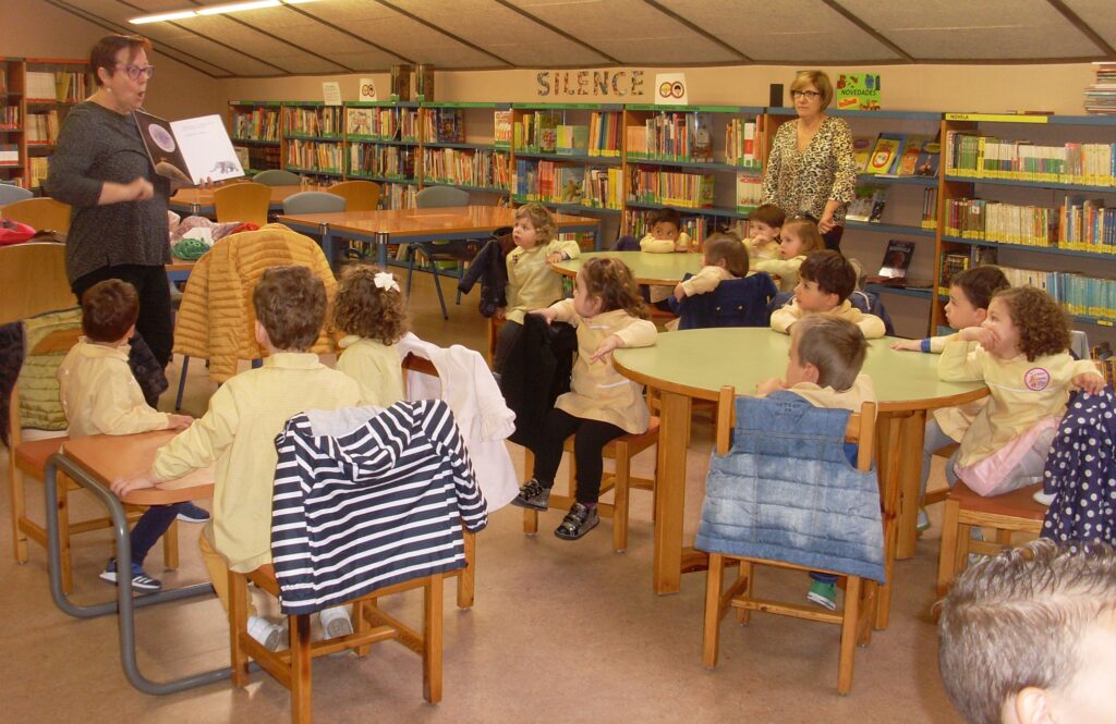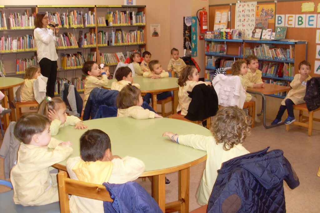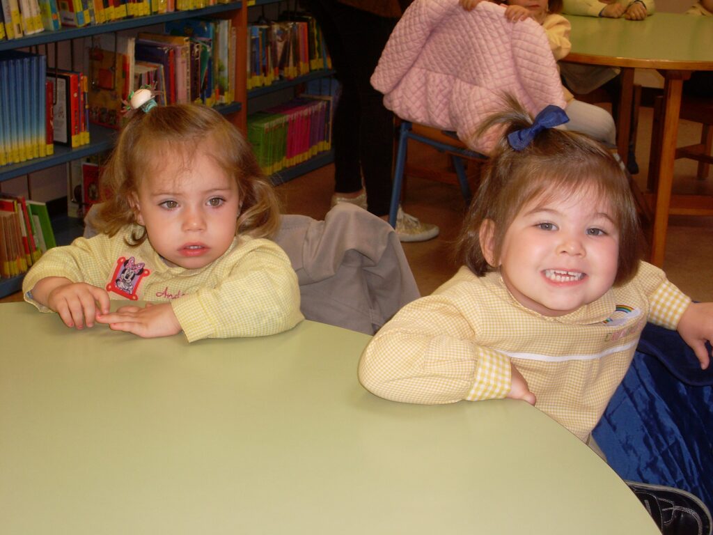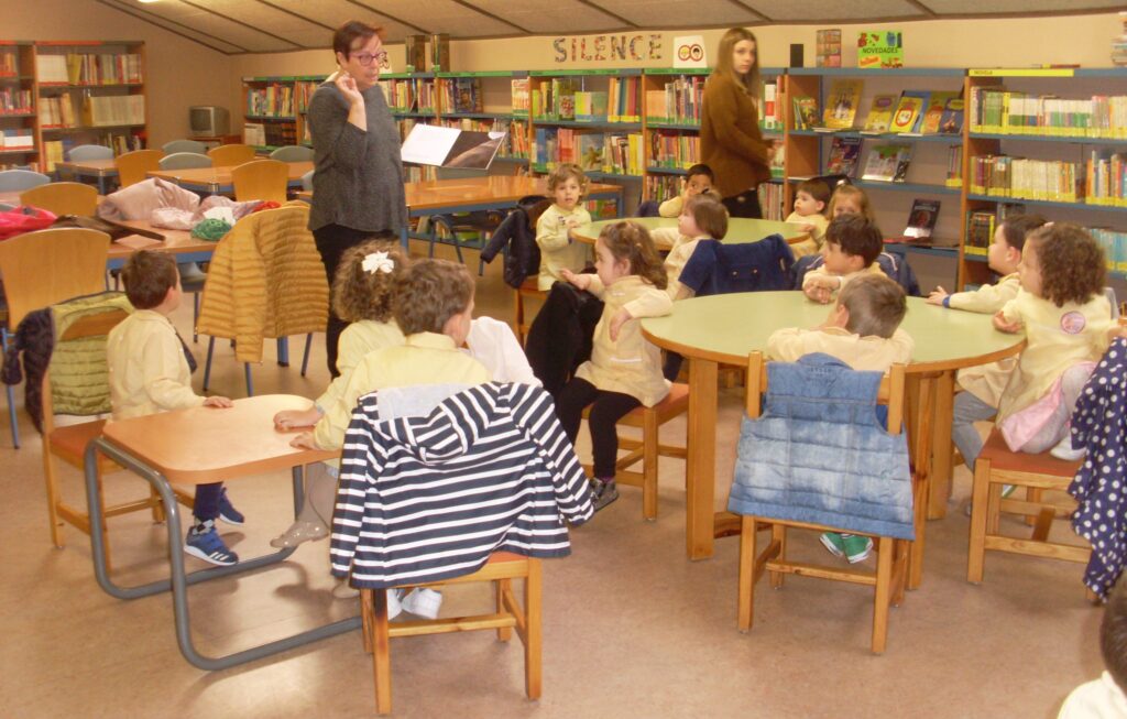 Hoy hemos visitado la biblioteca con el alumnado de 2 a 3 años. Los dos grupos acompañados de sus tutoras han ido bien agarrados a la cuerda guía, y hemos llegado a la biblioteca sin percances y disfrutando del estupendo día de sol que teníamos.