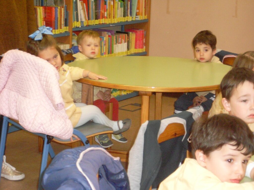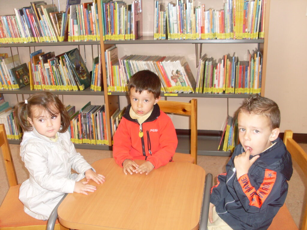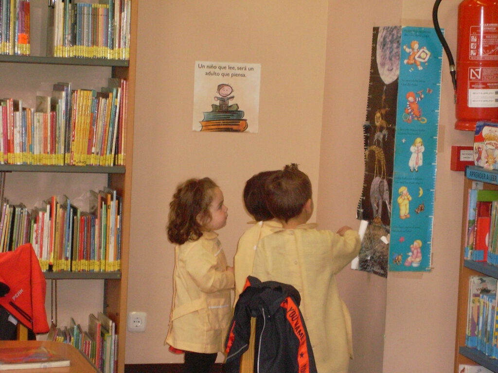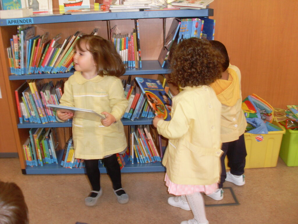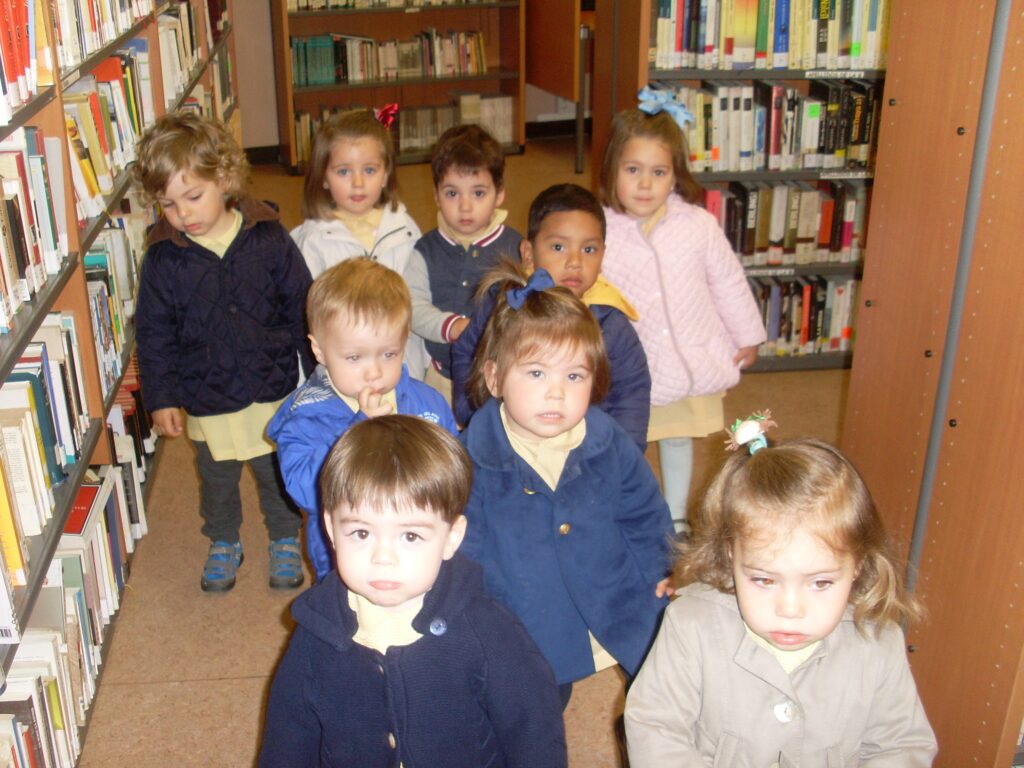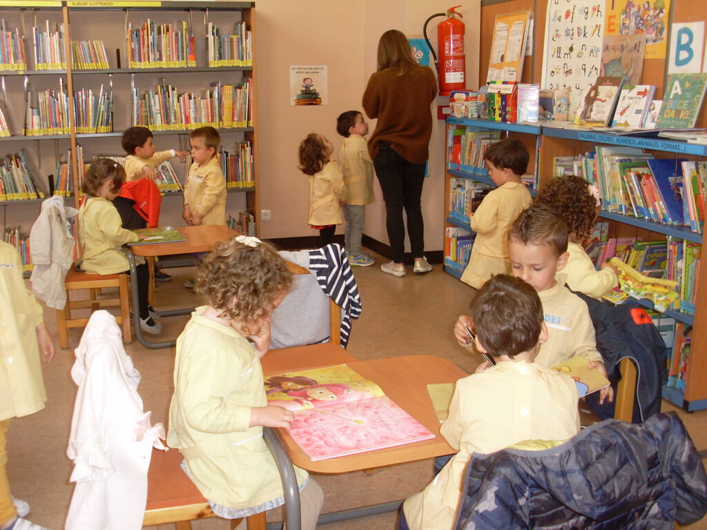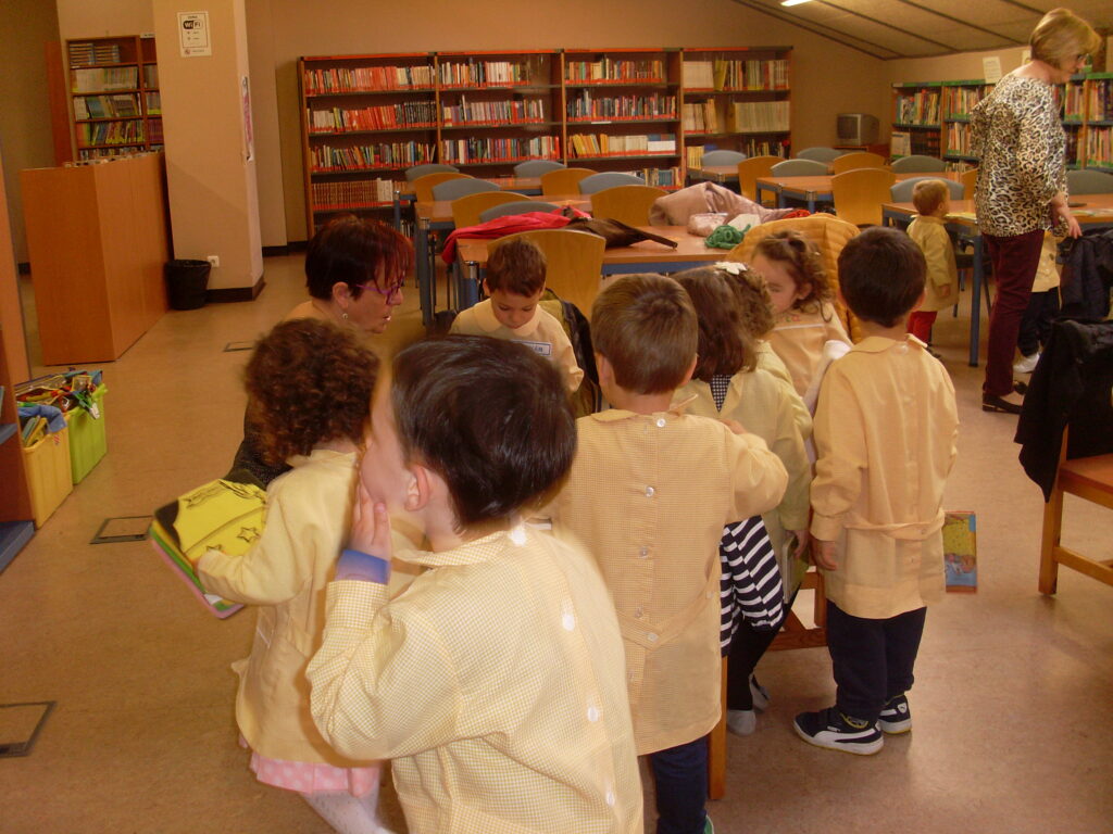 Ya en la biblioteca, han dado una vuelta por los pasillos, comprobando la cantidad de libros que hay, además de ordenadores , acabando en la zona de la biblioteca adaptada a los más pequeños.