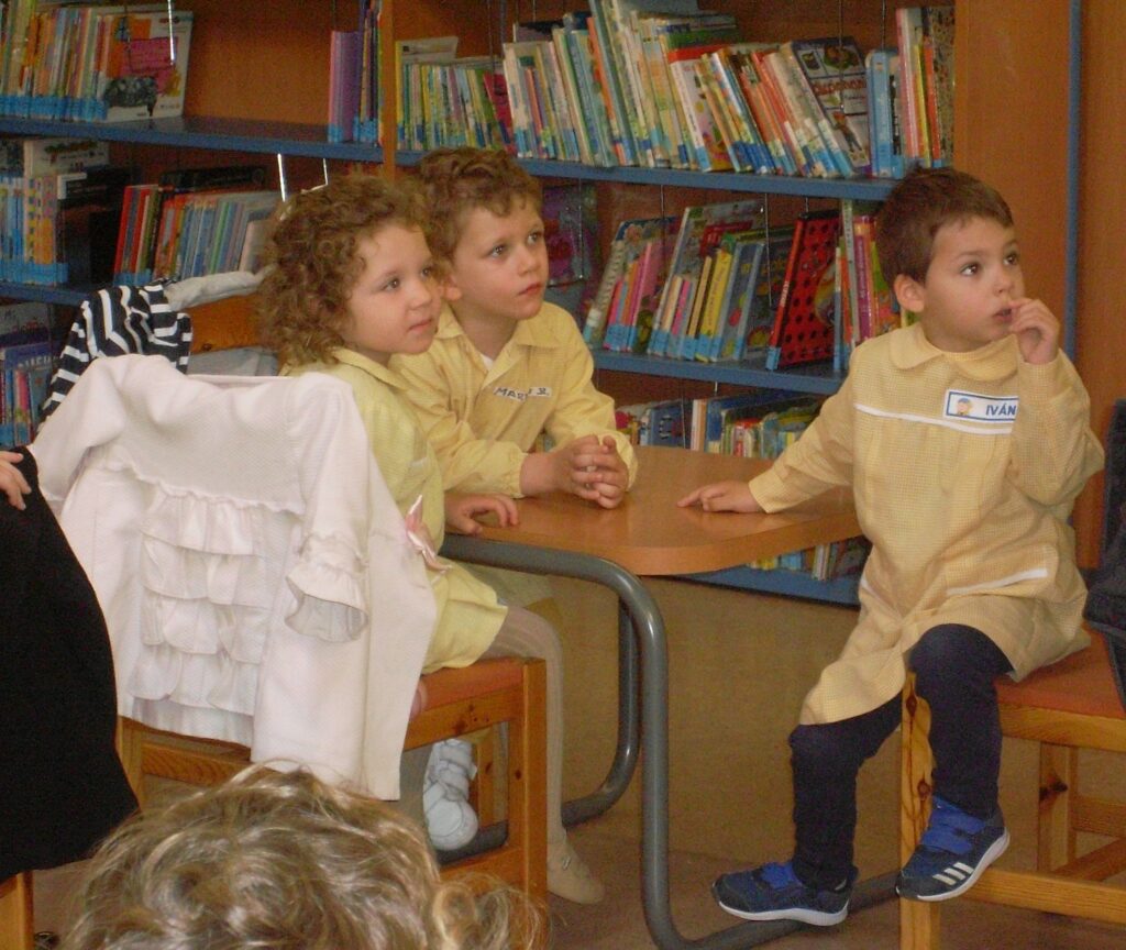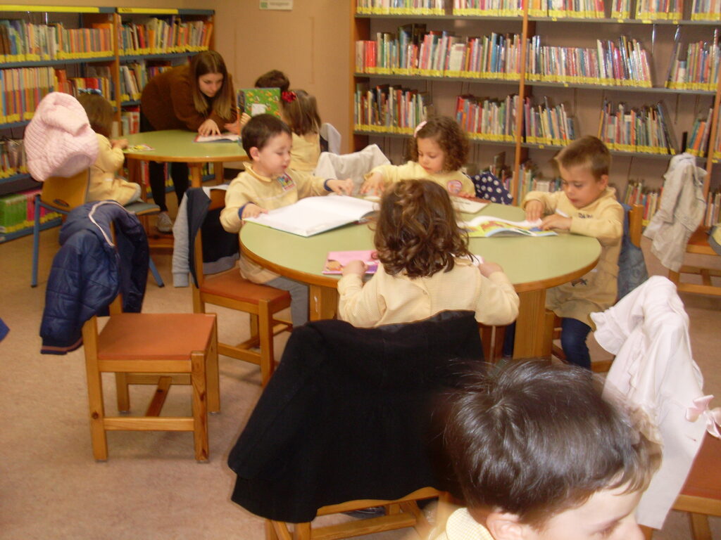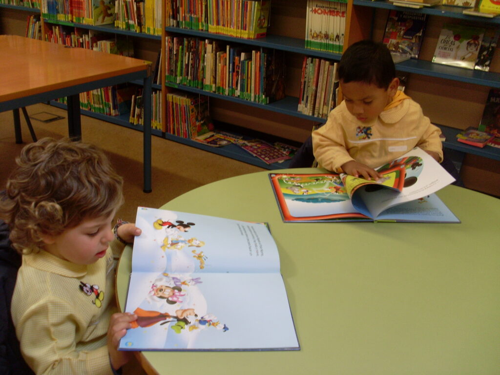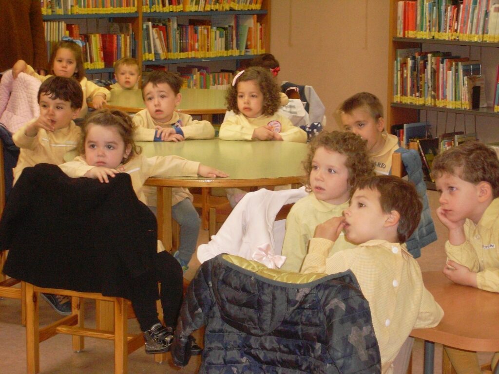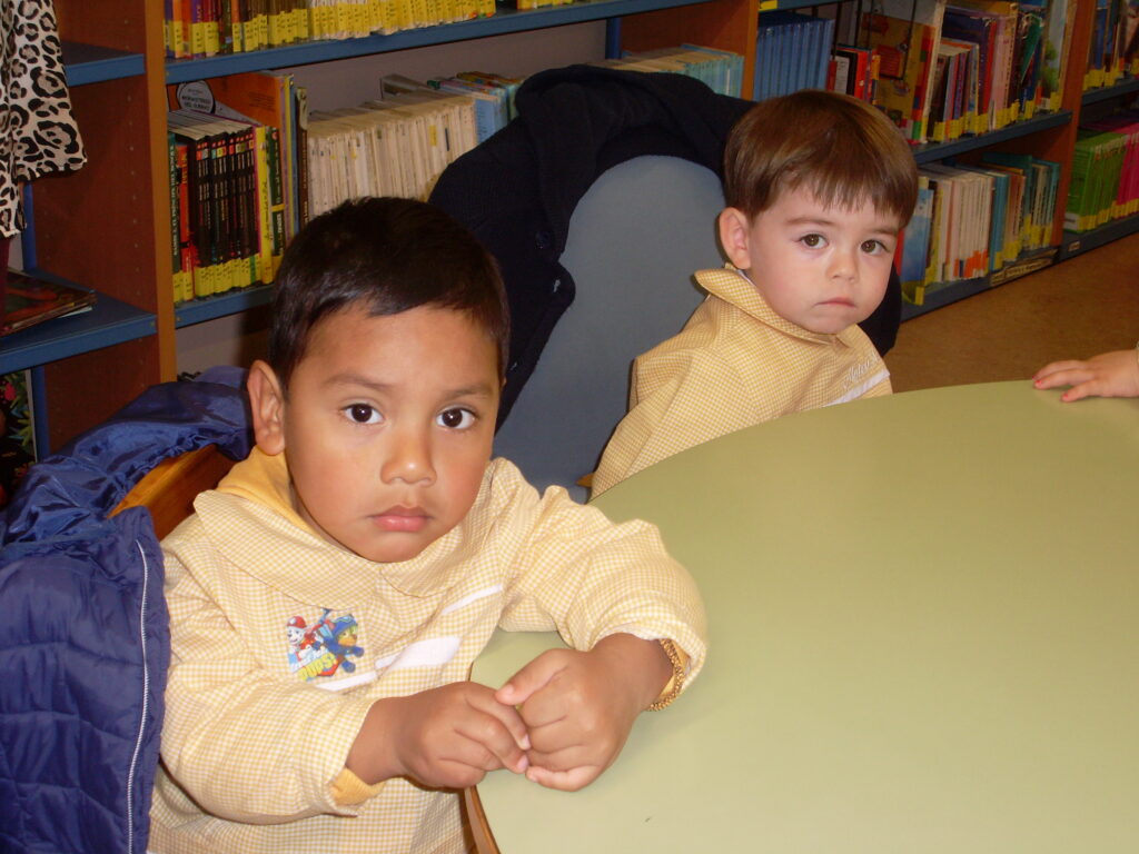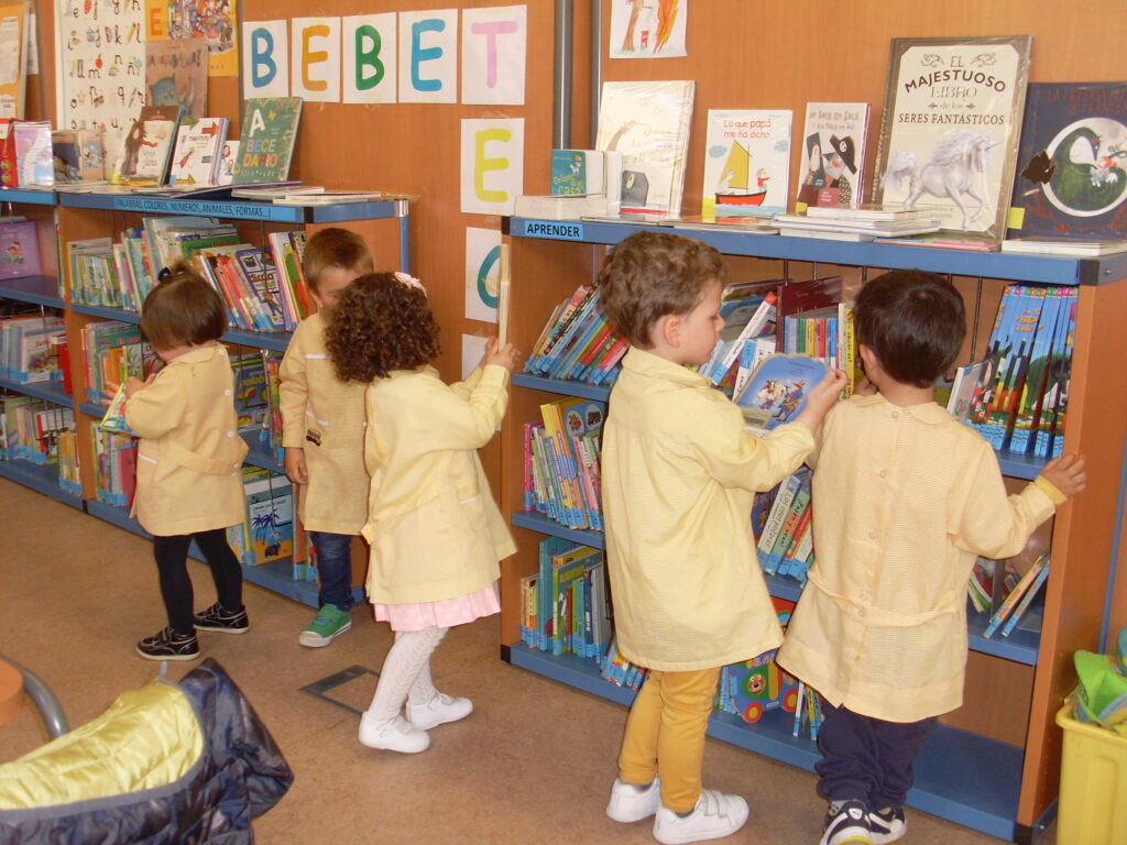 Ya en la biblioteca, han dado una vuelta por los pasillos, comprobando la cantidad de libros que hay, además de ordenadores , acabando en la zona de la biblioteca adaptada a los más pequeños.