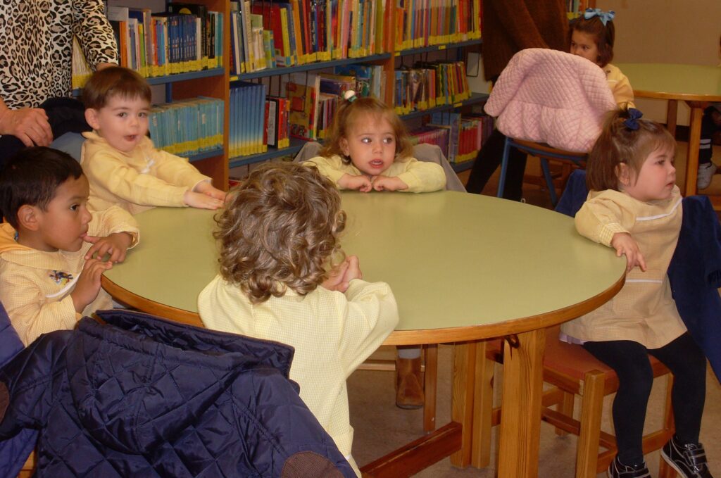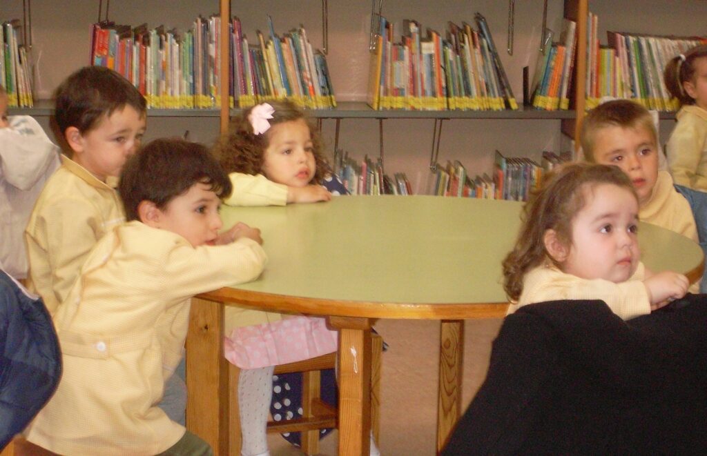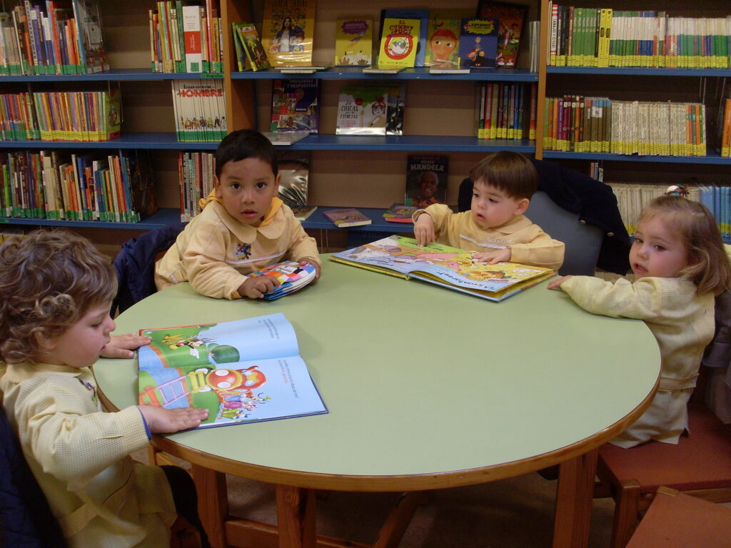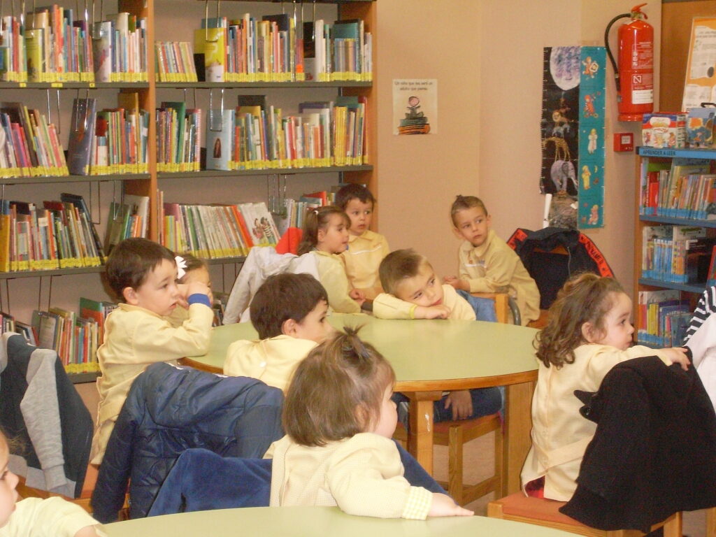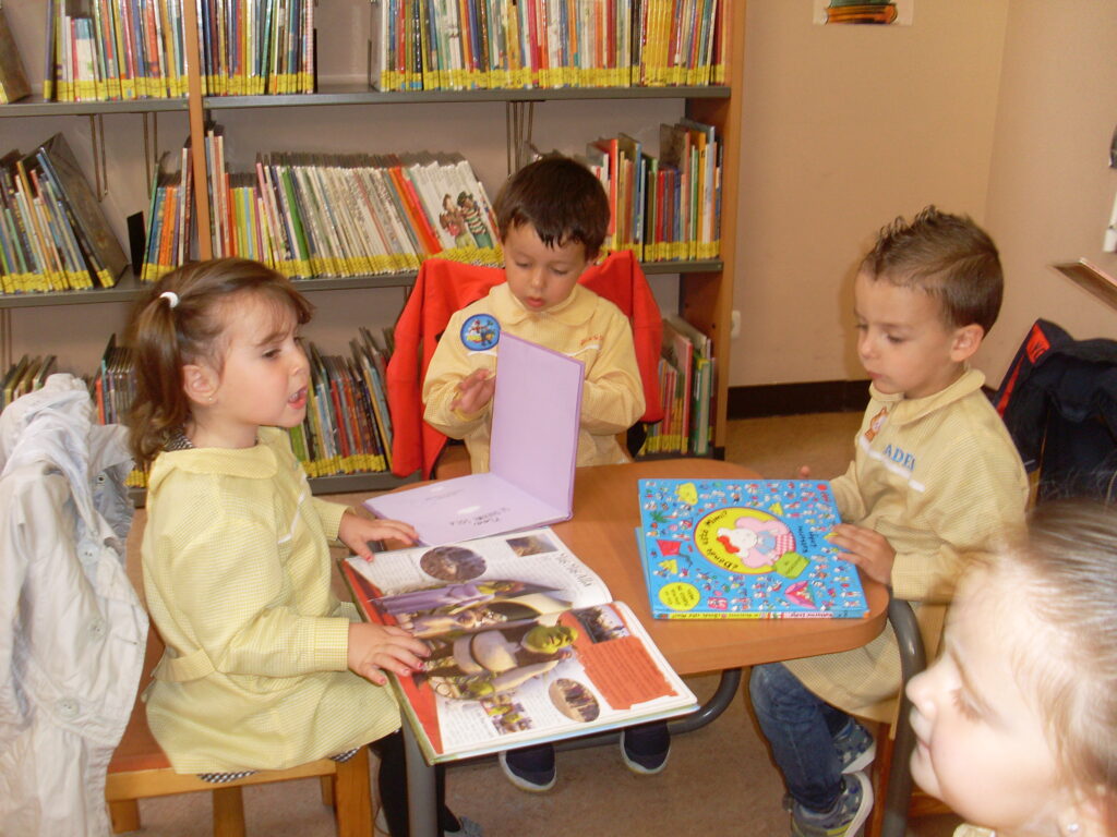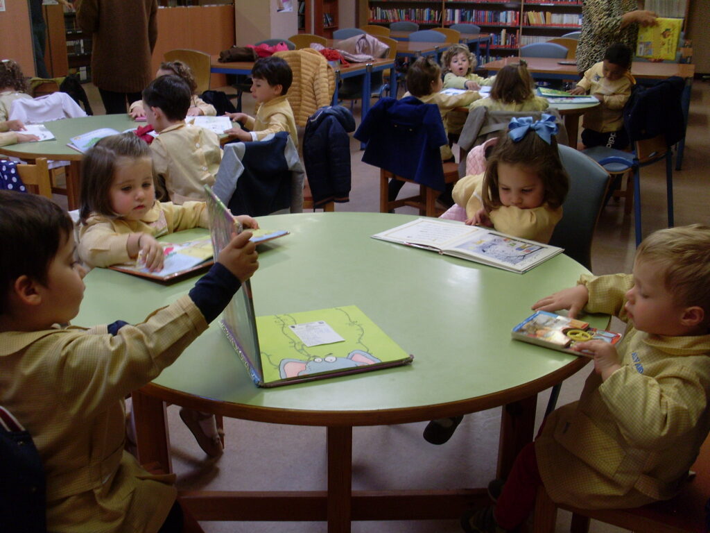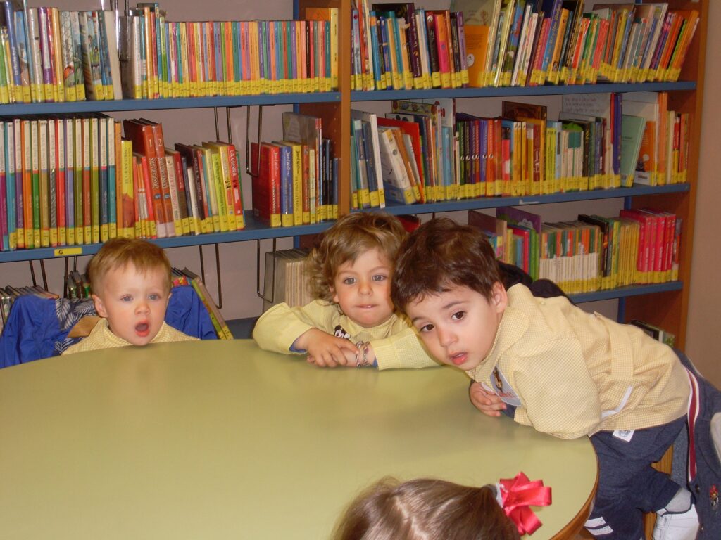 Ya en la biblioteca, han dado una vuelta por los pasillos, comprobando la cantidad de libros que hay, además de ordenadores , acabando en la zona de la biblioteca adaptada a los más pequeños.