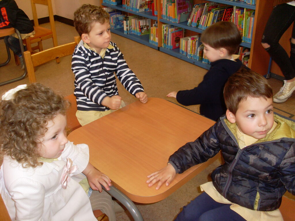 En cualquier salida, además del objetivo de conocer la biblioteca ( que seguro muchos y muchas ya conocen) aprovechamos para reforzar conocimientos y hacerles conscientes de todo lo que encontramos por el camino. Así , hemos saludados a las personas que encontrábamos por el camino, hemos esperado en el paso peatonal a que el semáforo se pusiera verde etc…