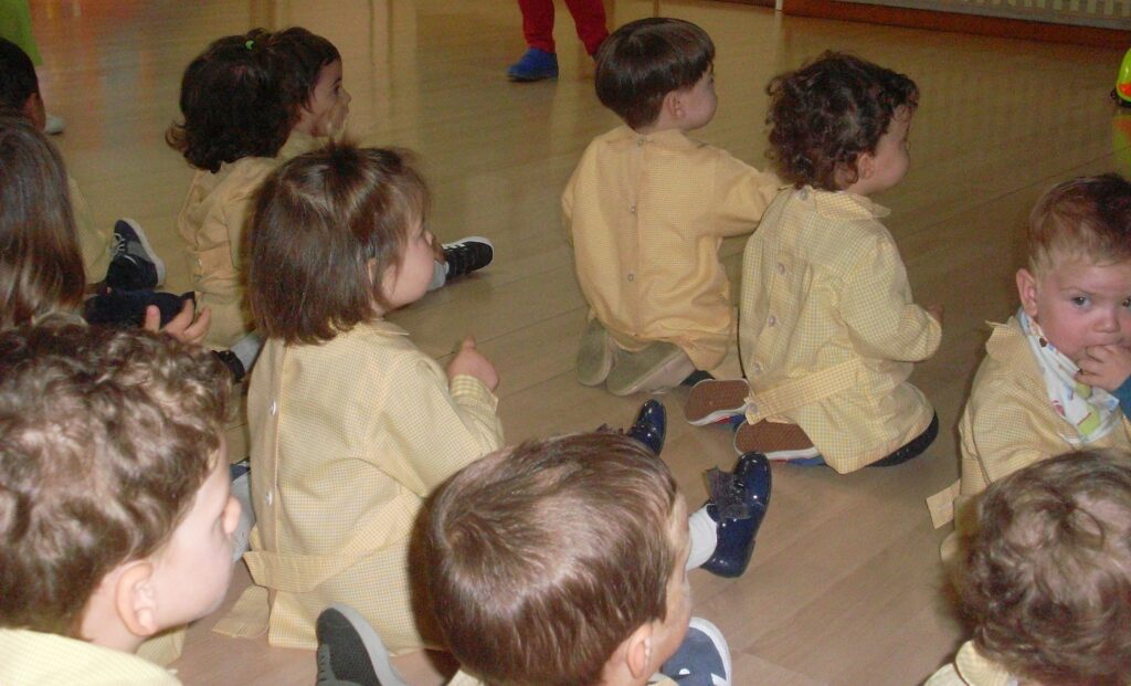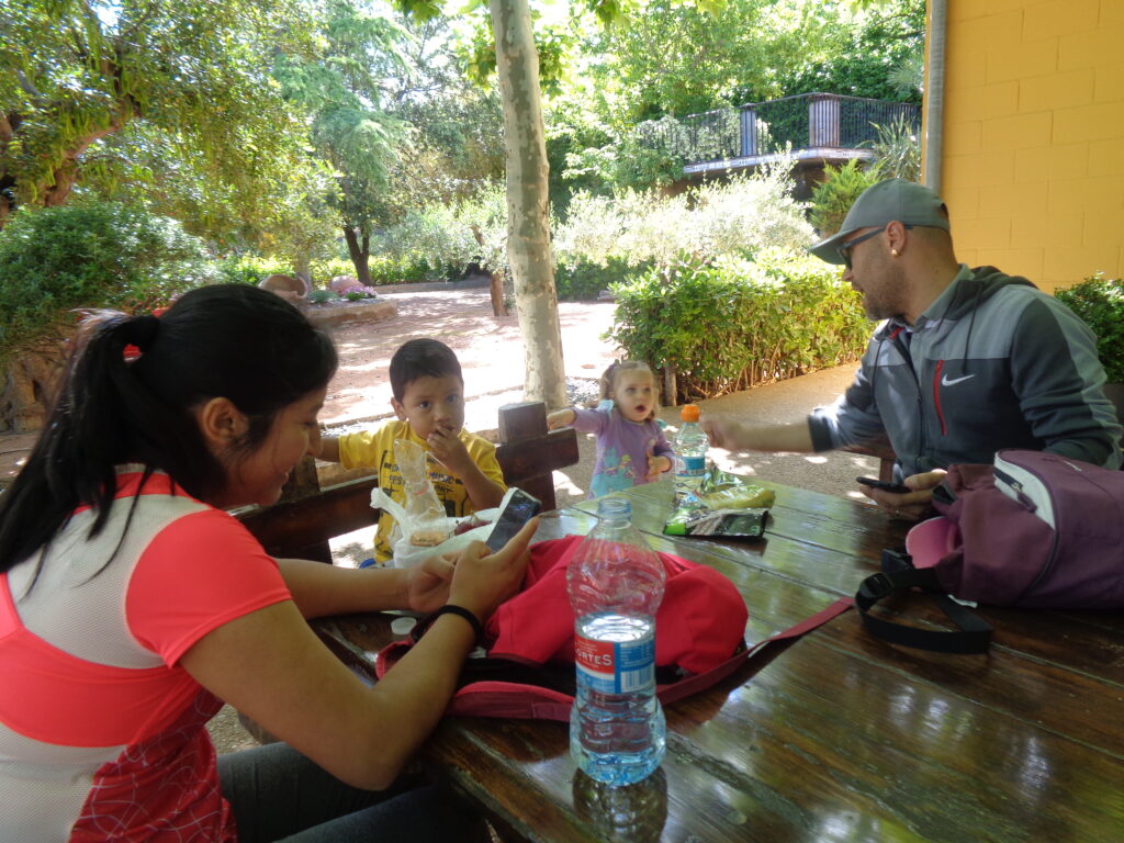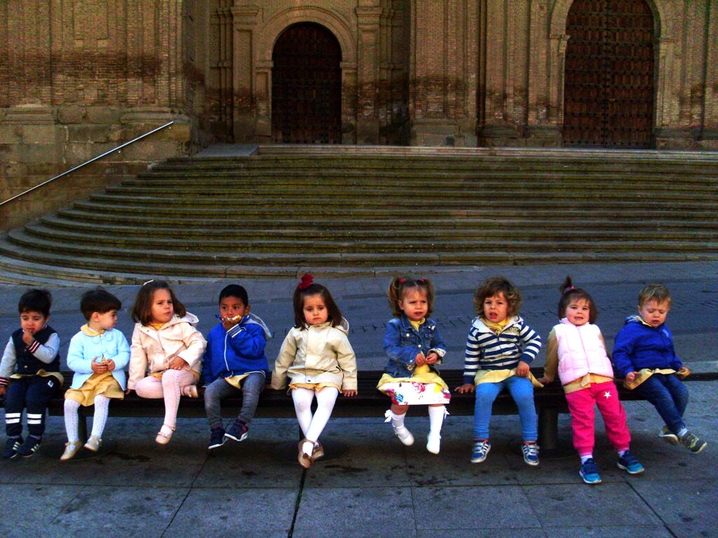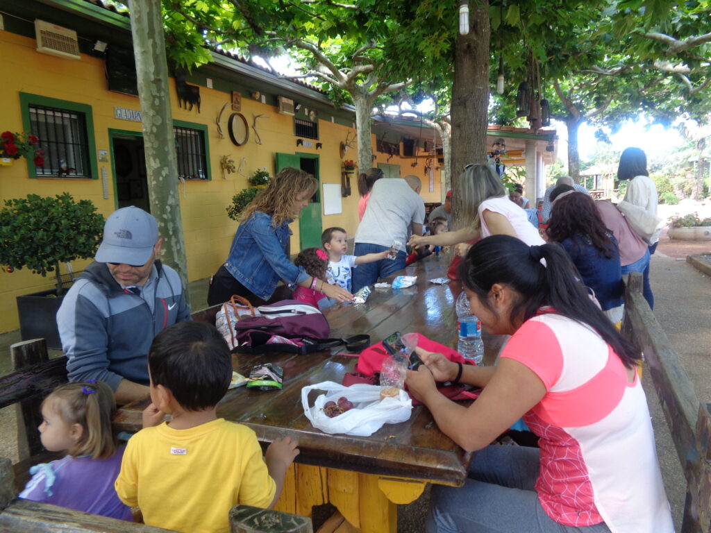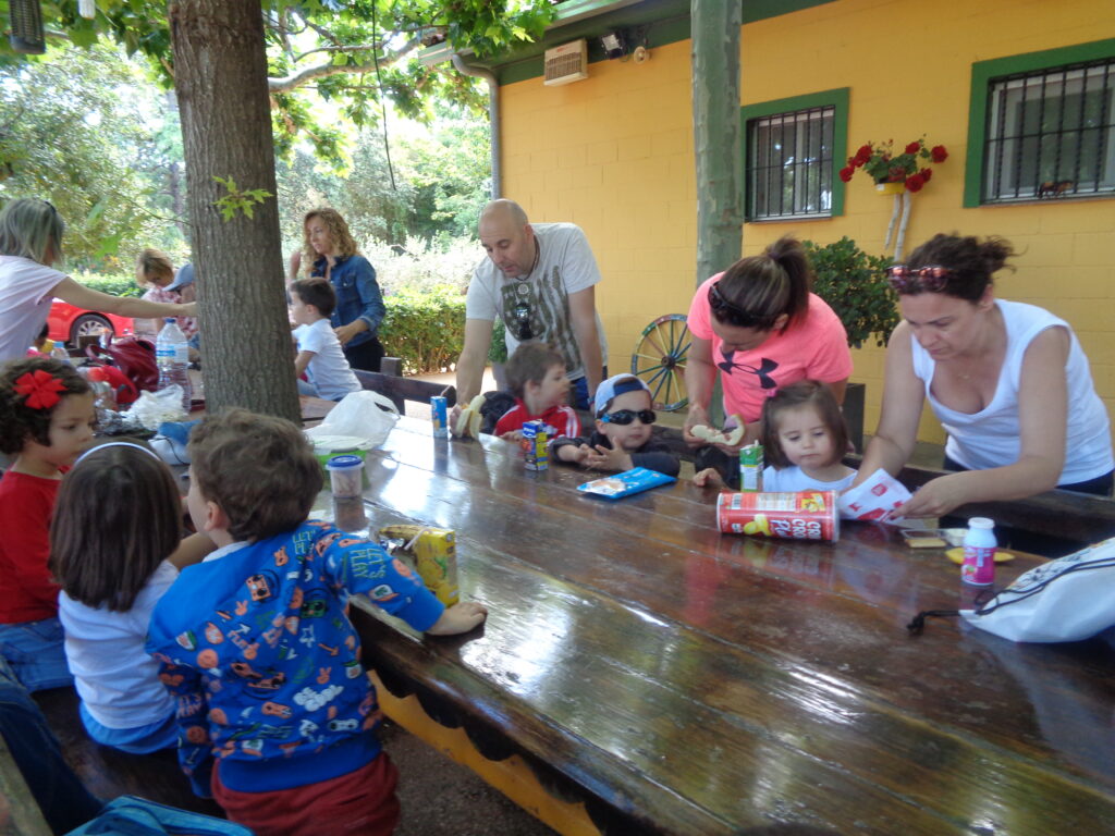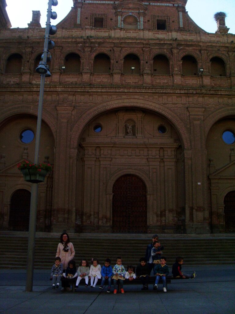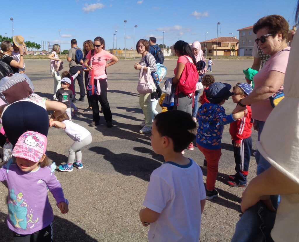 Salimos tranquilamente de la escuela, agarrados a la cuerda para recorrer el paseo de La Florida hasta la Plaza de España, donde hicimos un breve descanso para almorzar.
