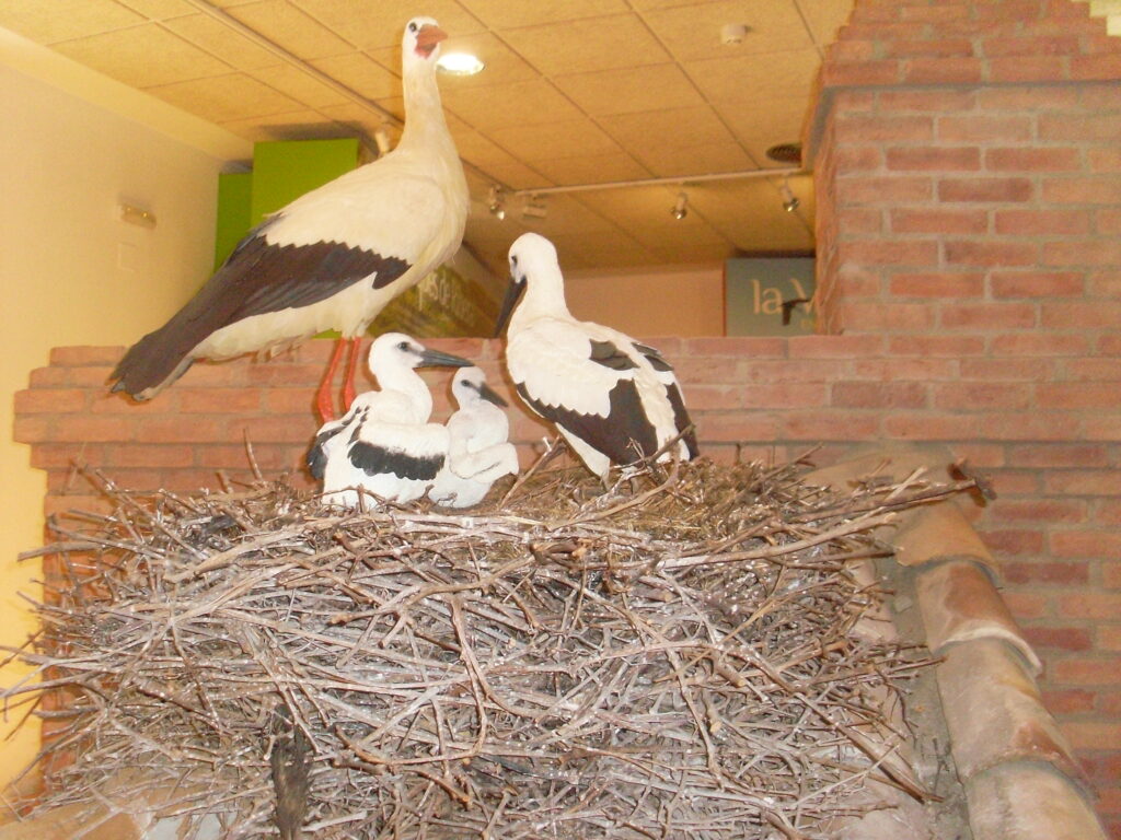 También hay una reproducción de un nido de cigüeñas donde aprendimos las diferencias por el color del pico entre los adultos y los pollos , el nombre de los pollos ( cigoñinos) todo muy bien explicado por Beatriz, la responsable del centro.