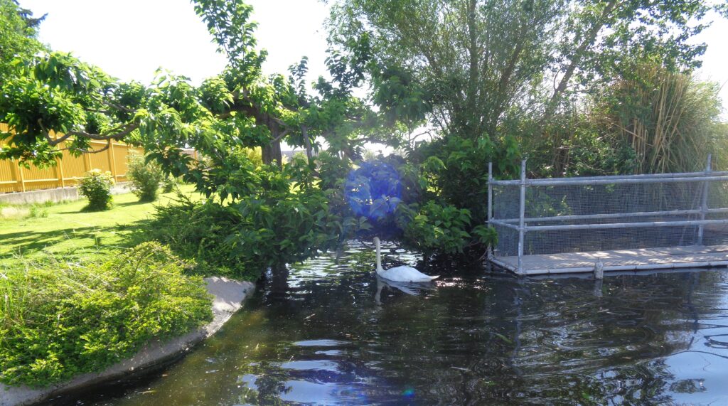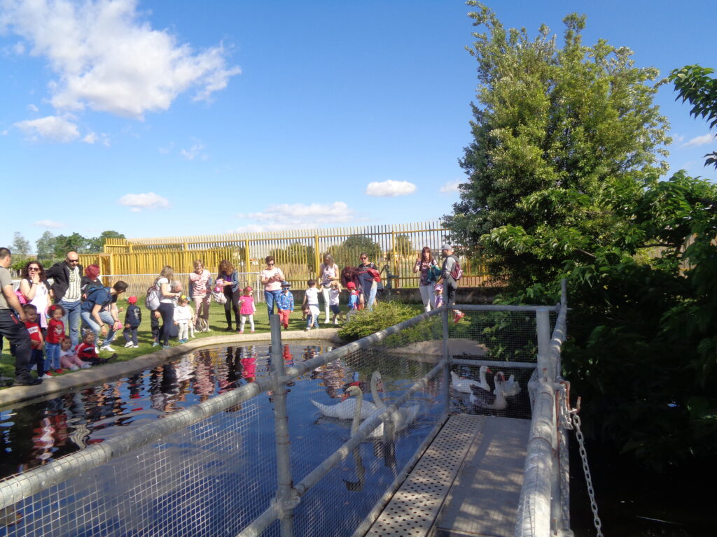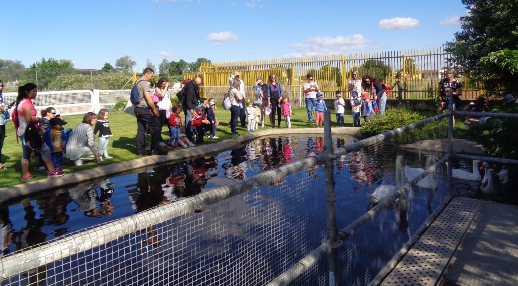 Ya en la finca, lo primero que vimos fueron los cisnes y ocas…. que se refugiaron en su lago ante tanto alboroto.