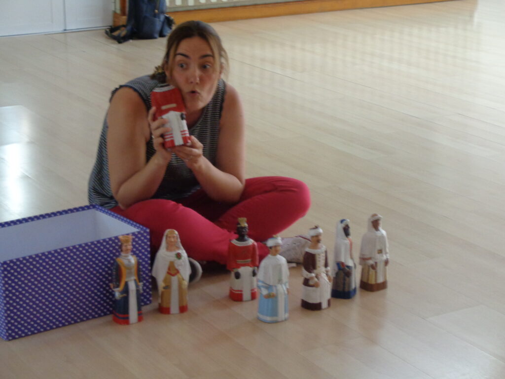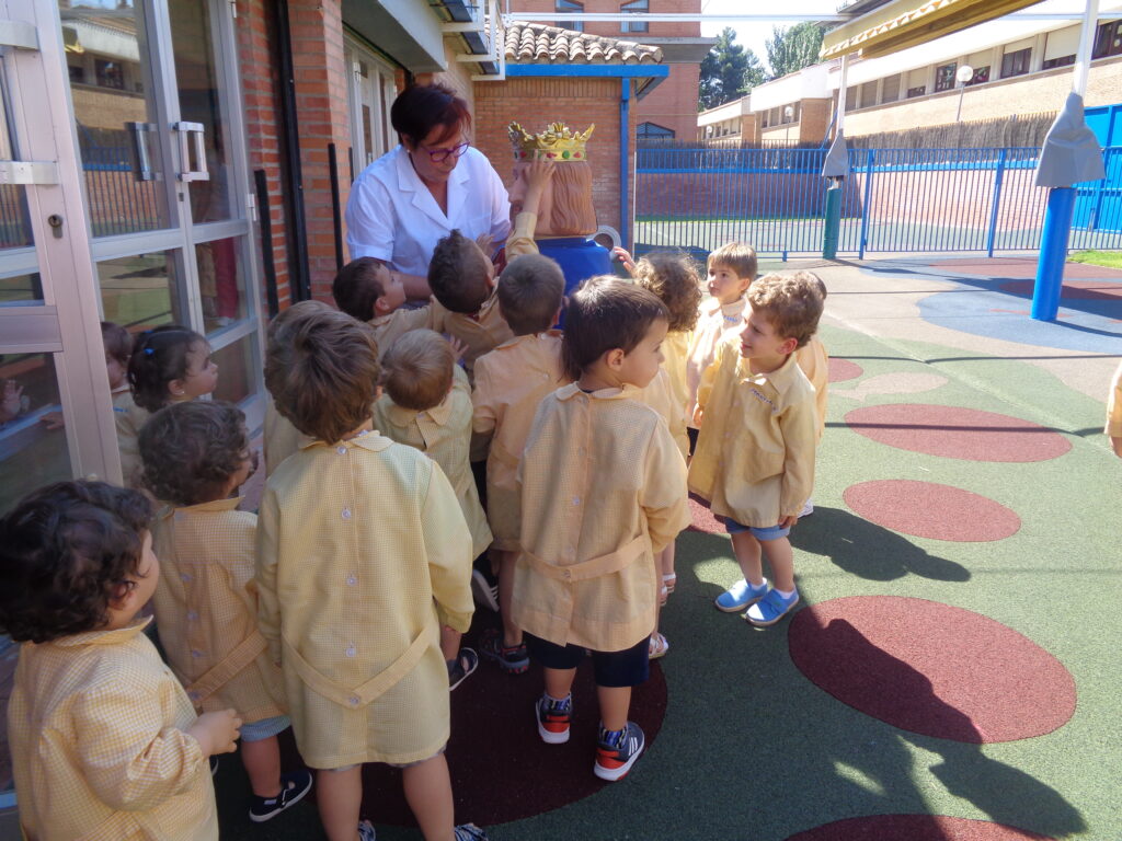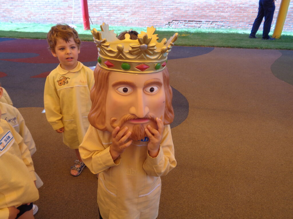 La familia Nialet-Entrena, para divulgar sus cuentos, nos ofrecieron venir a contar el cuento » Donde está mi corona» cuyos protagonistas son los gigantes de Pamplona, el alumnado pudo bailar con los gigantes de goma que Arantxa utilizó para narrar el cuento, tocarlos y aprender sus nombres.
