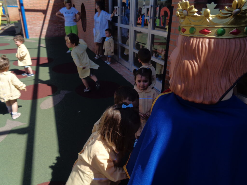 Como algunos se asustaron un poco y no les gustaba la presencia del gigante en el salón, lo bailaron en el patio , los que quisieron, bailaron con el y los que no, se quedaron mirando bien protegidos desde el interior del salón.