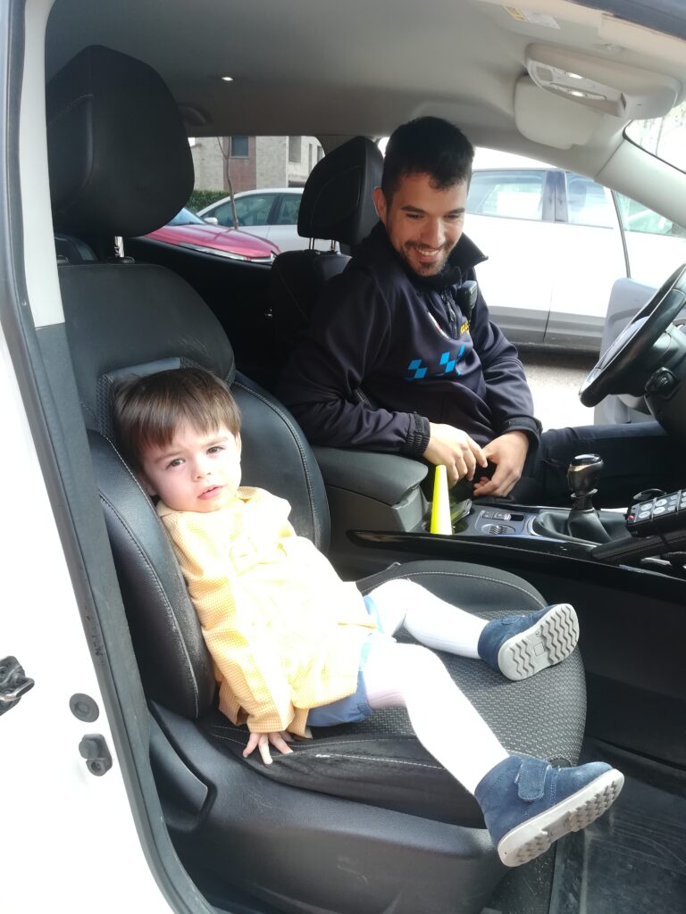 Ya hemos estudiado educación vial en las aulas de 2-3 años, aprendiendo la importancia de ir de la mano por la calle, el significado de los colores del semáforo y las instrucciones del guardia y que siempre, siempre debemos ir en el coche en la silla porta bebés bien sujetos con el cinturón.