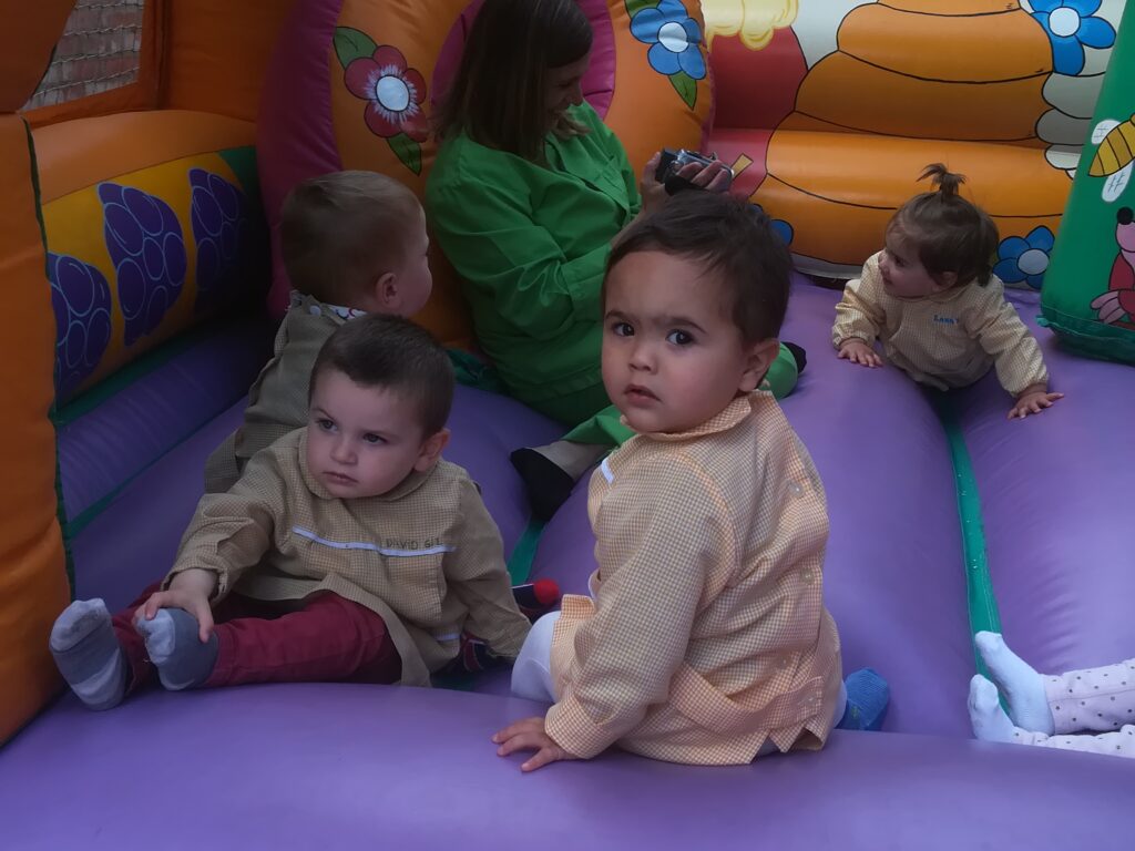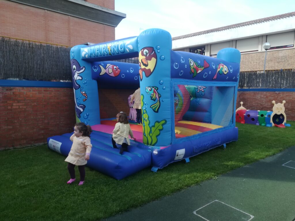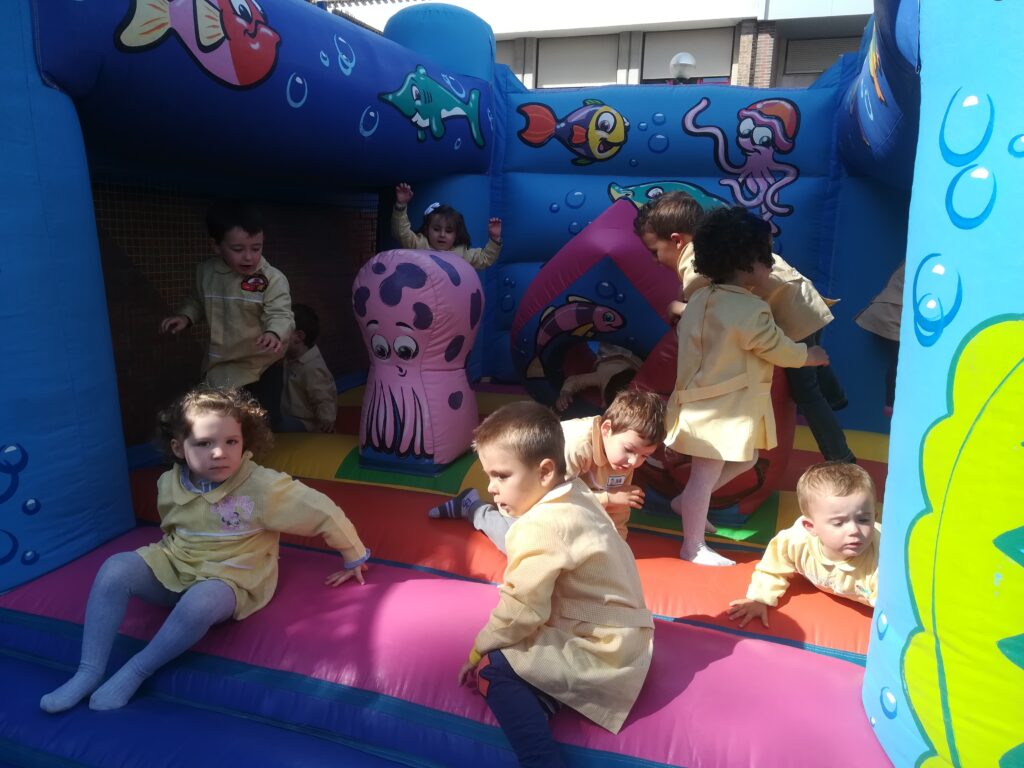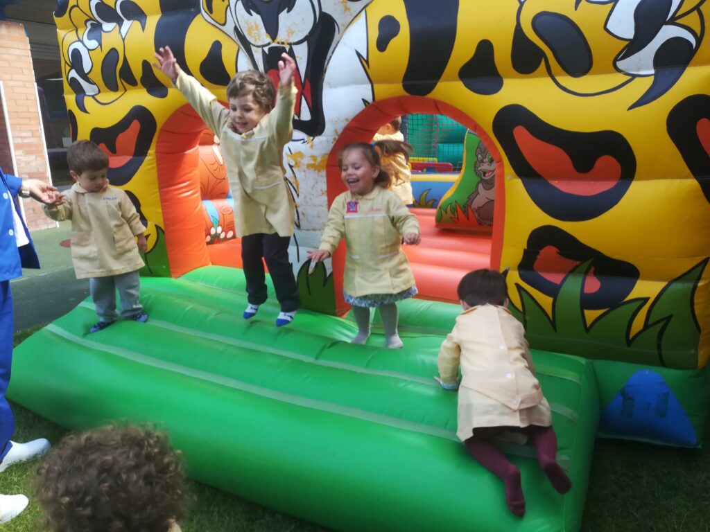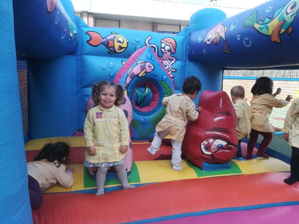la Asociación de familias de la escuela , nos ha traído al jardín hinchables para pasar la mañana saltando y saltando .
