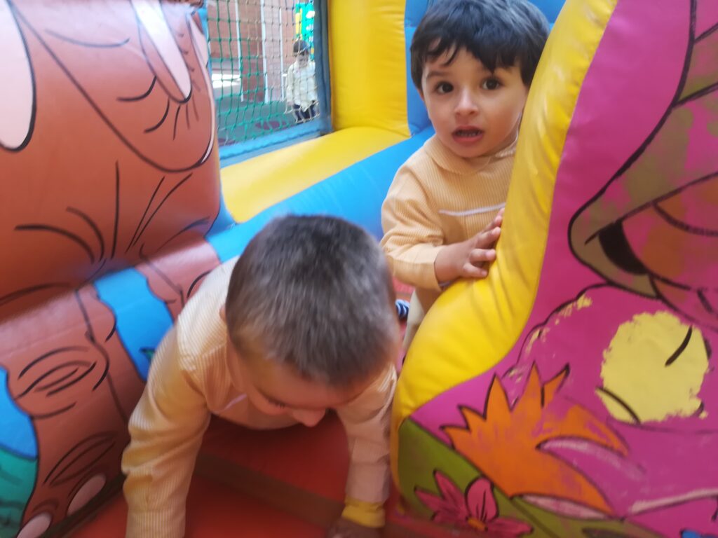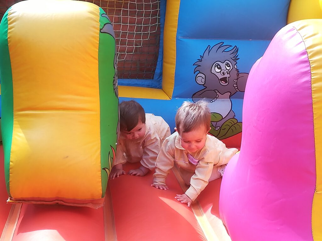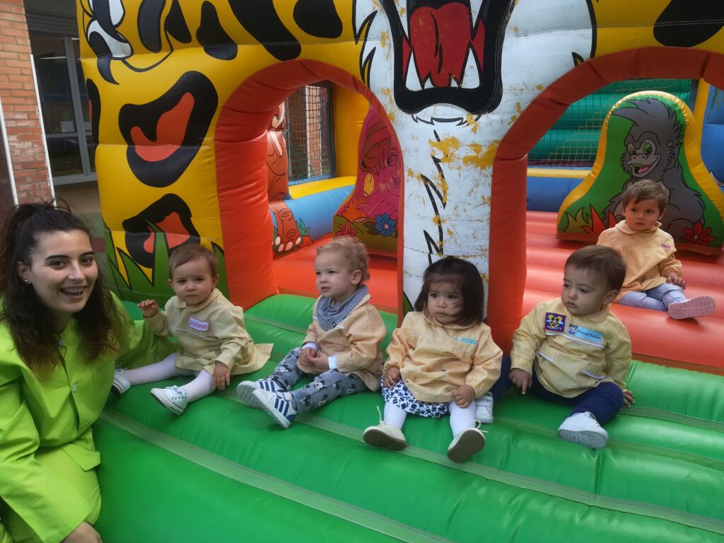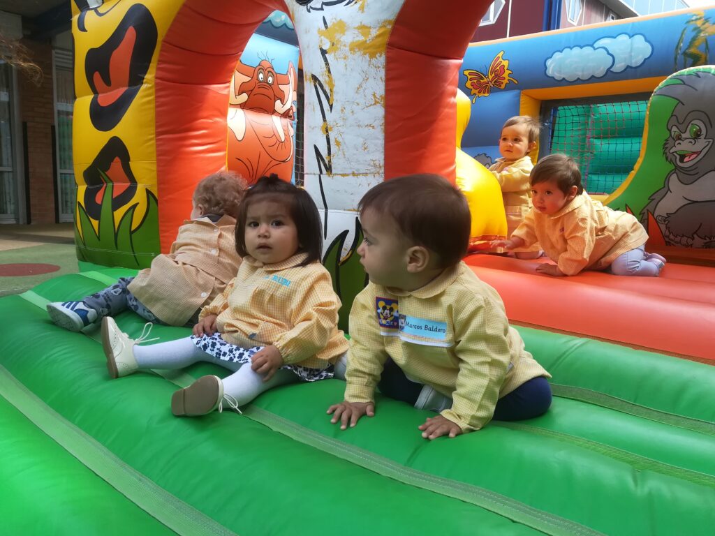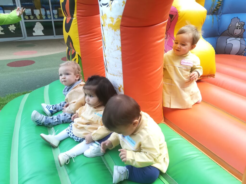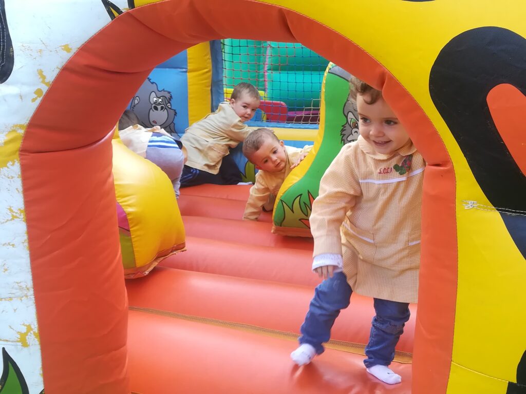 la Asociación de familias de la escuela , nos ha traído al jardín hinchables para pasar la mañana saltando y saltando .