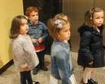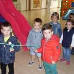 Como en cualquier trayecto, por corto que sea, procuramos que observen y recuerdes conceptos que hemos trabajado en el aula, como el paso de cebra, el semáforo, las tiendas , los árboles flores y pájaros etc… También saludamos a las personas con las que nos encontramos, y todo esto, sin soltarse de la cuerda guia con la que hacemos el trén.