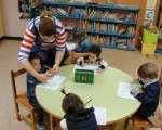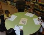 Deespues de escuchar el cuento, Guillermo el responsable de la Biblioteca les dió un cuento para colorear y pinturas.