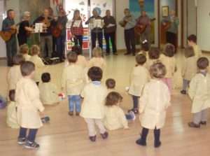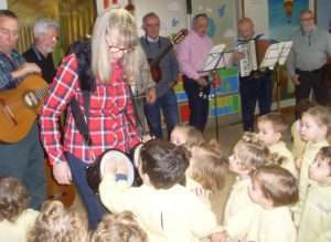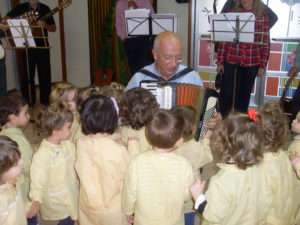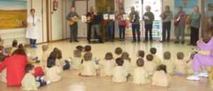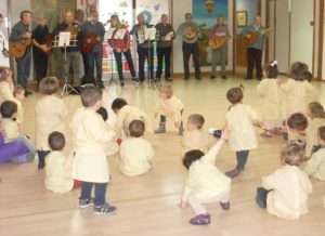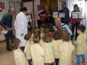 Como todos sabéis, esta rondalla ameniza con sus rondas las fiestas y otros eventos con canciones de siempre de tuna, pasodobles etc…. pero su implicación con nuestra escuela, les ha llevado a preparar canciones infantiles para que los niños les acompañen con sus cantos, así que a su repertorio, han añadido» Susanita tiene un ratón»,» En el auto de papá» » Hola Don pepito, Hola don José» que hicieron las delicias del alumnado.