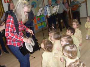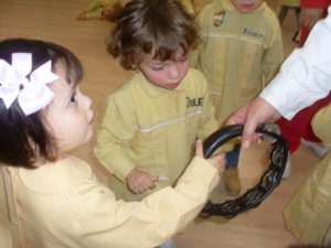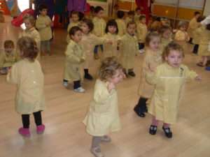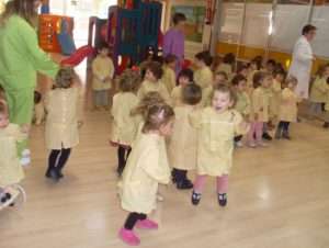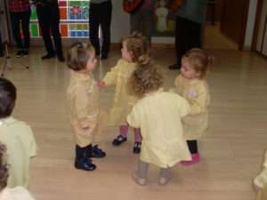 Durante un breve tiempo, escucharon con atención lo que cantaban, pero les invitamos a que bailar al son de la música, y unos saltaban sin parar, otros giraban, otros daban palmas y movían el culete ….