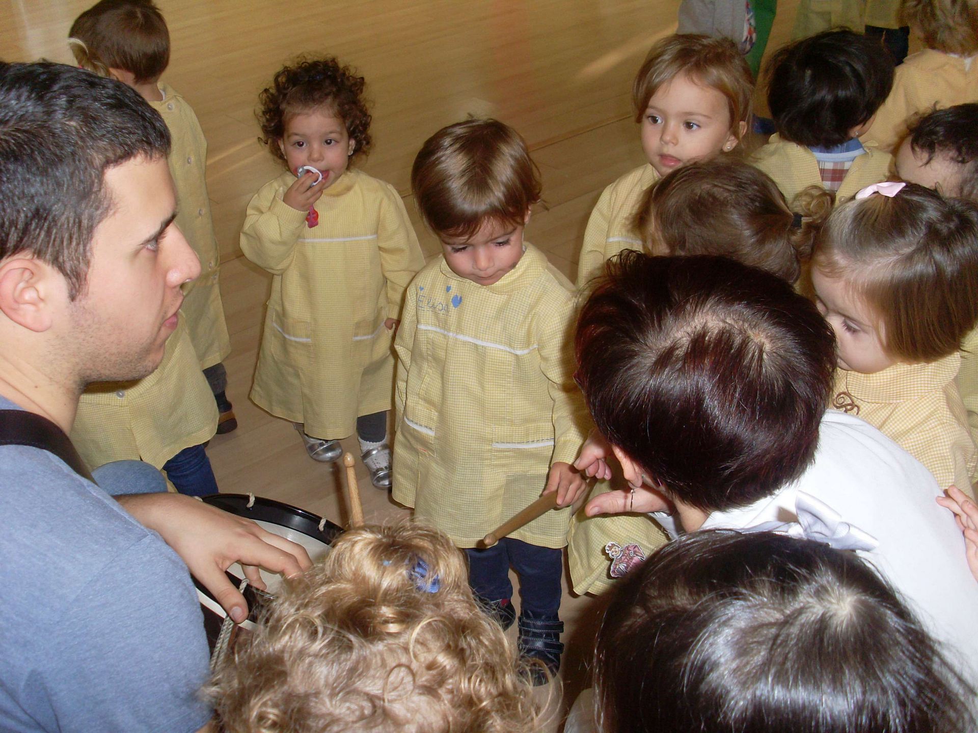 Cuando acabamos de bailar, los gaiteros nos dejaron tocar el tambor.