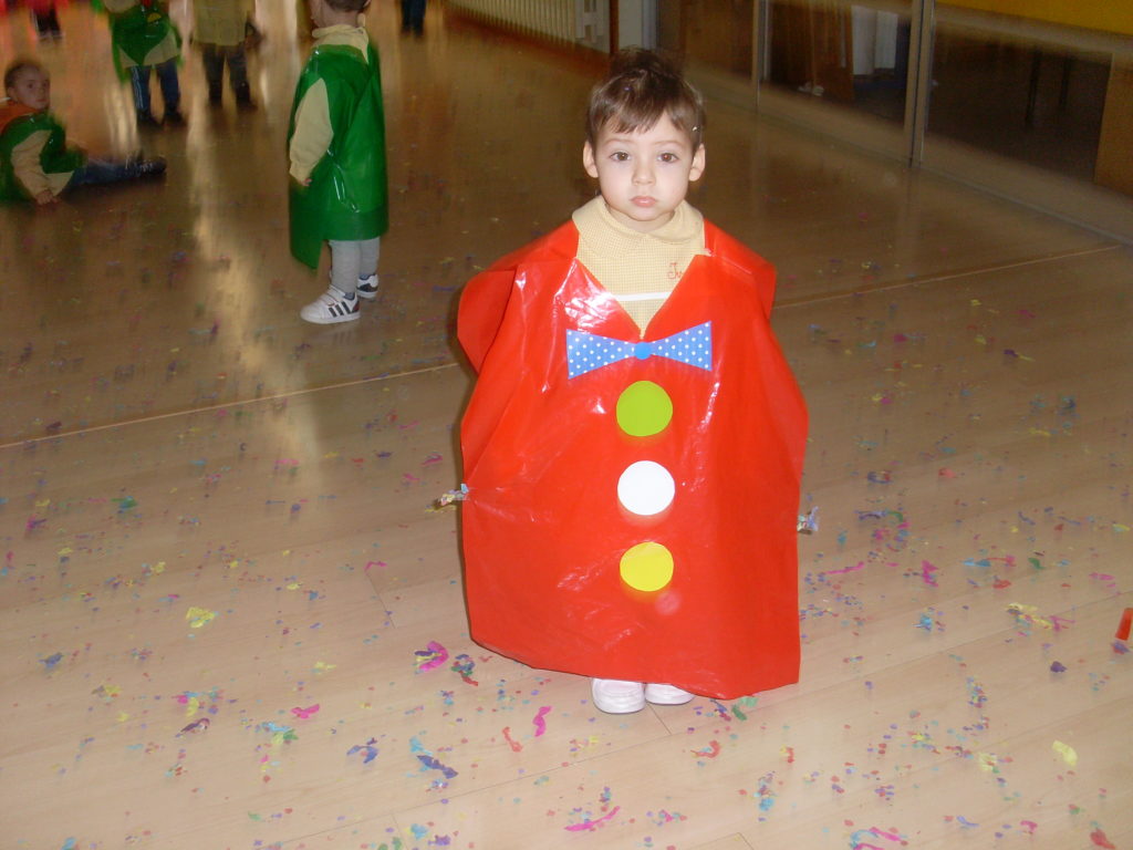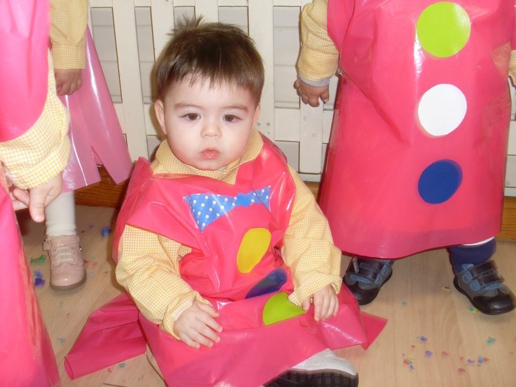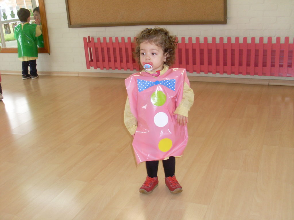 Una vez todos en sus clases, hablamos del carnaval, los disfraces y les enseñamos el que se había preparado para ellos.